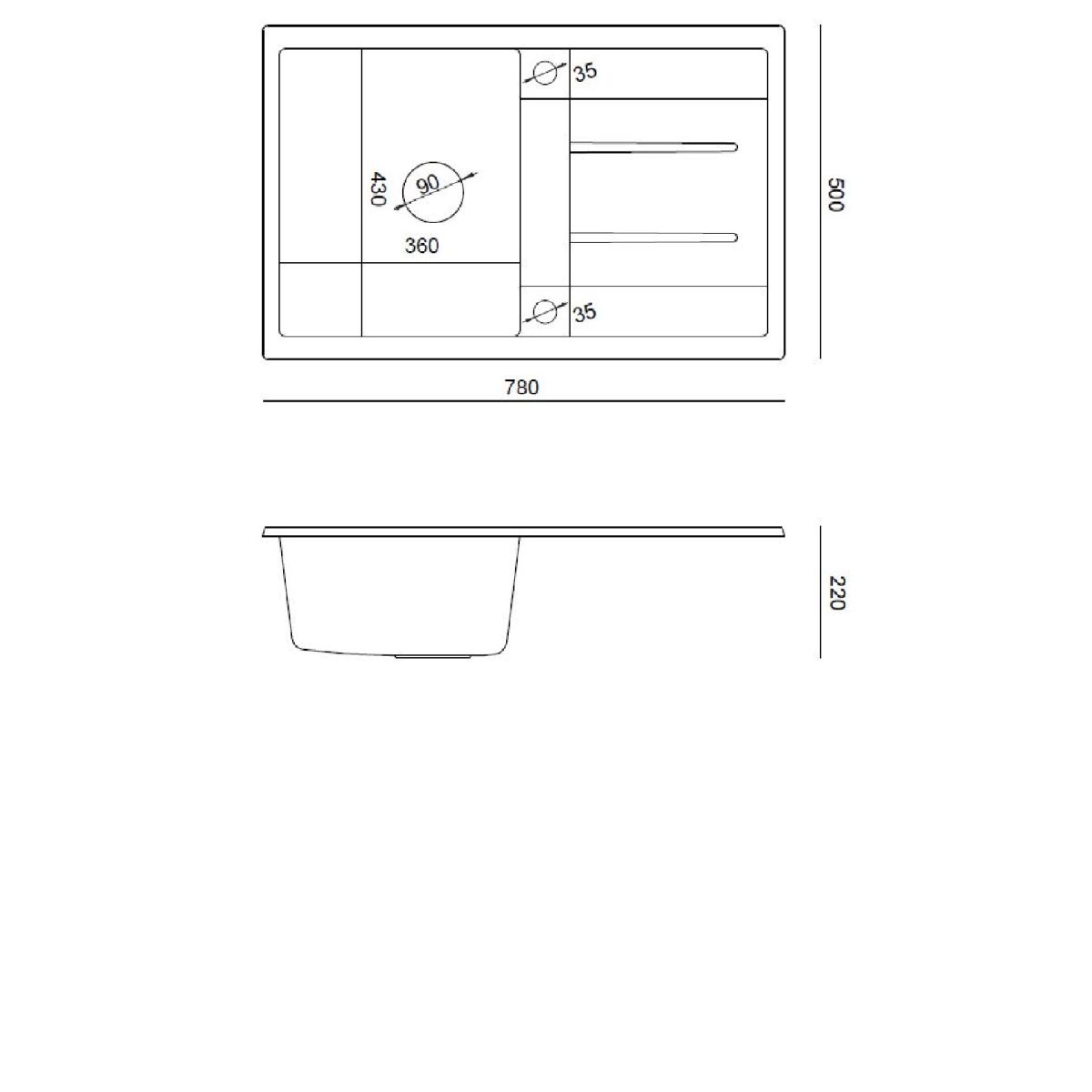 - Abmessungen der Spüle: 78 x 50 cm