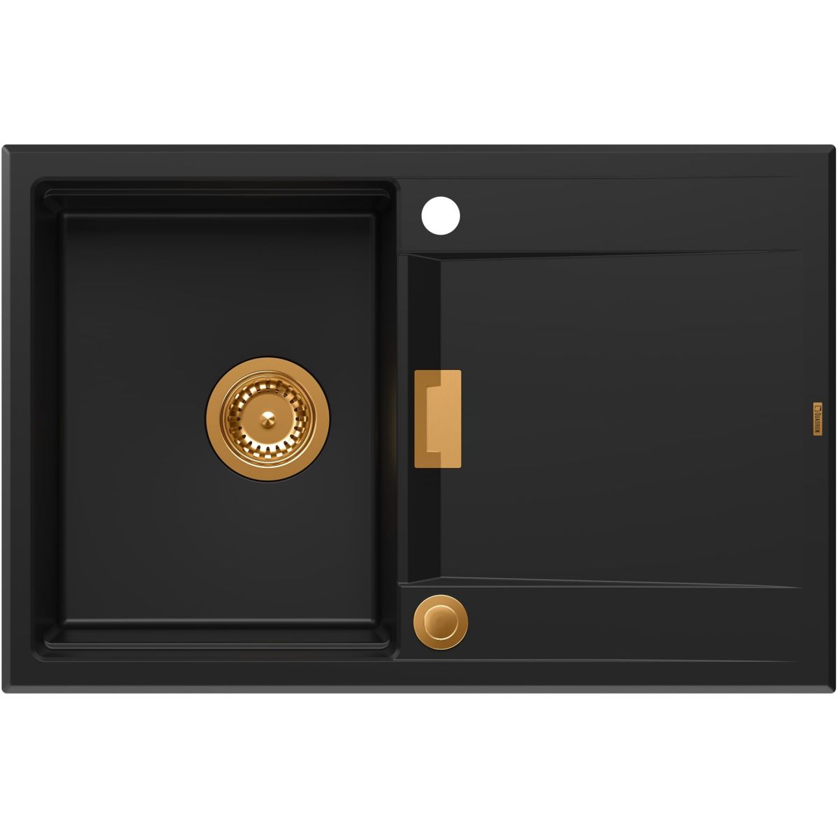Owen ist ein modernes Spülbeckenmodell, ergänzt durch einen sehr eleganten horizontalen Überlauf, der sich auf dem Abtropfbrett befindet. Diese Lösung ermöglicht eine fast 100-prozentige Ausnutzung des Fassungsvermögens der Kammer. Im Inneren der Kammer wurde eine Vertiefung für funktionale Accessoires wie eine Rollmatte oder einen Korb vorgesehen. Das Modell ist mit einem Push2Open-Siphon ausgestattet – einem automatischen Siphon mit Druckknopf in der Save Space-Version (platzsparend im Schrank). Die einfachen, minimalistischen Linien werden durch die edle Verarbeitung der verwendeten Accessoires unterbrochen, die den einzigartigen Charakter dieses Modells unterstreichen. Die Spüle aus GraniteQ garantiert höchste Hygiene und Langlebigkeit. GraniteQ – sorgt für hohe Härte, Langlebigkeit und Hygiene der Oberfläche. Sie sind leicht zu reinigen, beständig gegen hohe Temperaturen (heiße Töpfe) und die in der Küche so häufigen plötzlichen Temperaturwechsel (kochendes und kaltes Wasser), beständig gegen chemische Einflüsse und viele Arten von Ablagerungen (z. B. von Kaffee oder Tee). Das Material GraniteQ besteht aus feinen Granitpartikeln (75-80 %), die mit einem hochwertigen Bindemittel (20-25 %) miteinander verbunden sind, wodurch die Spüle eine außergewöhnliche Festigkeit und Widerstandsfähigkeit aufweist. Durch die Verwendung sehr feiner Granitpartikel wird der mit Bindemittel gefüllte Raum minimiert, wodurch eine seidig glatte und sich weich anfühlende Spüle entstanden ist, was auch für die Reinigung und Pflege, vor allem aber für die Hygiene und Sauberkeit von großer Bedeutung ist. Die Überlaufrosette ist ebenfalls aus Edelstahl SteelQ gefertigt und in ausgewählten Versionen in PVD-Technologie in einer Farbe erhältlich, die auf die Farbe der übrigen Elemente abgestimmt ist, was ihre Schönheit noch mehr unterstreicht. Die Spüle ist mit einem Abfluss aus Edelstahl SteelQ ausgestattet und in ausgewählten Versionen mit PVD-Technologie in einer Farbe, die auf die übrigen Elemente abgestimmt ist, was dem Produkt ein elegantes Aussehen verleiht, sowie mit einem Siphon, an den eine Spülmaschine oder Waschmaschine angeschlossen werden kann.