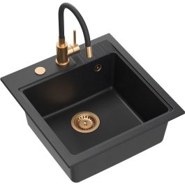 2. Maggie-Armatur mit flexiblem Auslauf. Der Armaturenkörper ist aus Stahl gefertigt, sodass die Armatur kein schädliches Blei enthält. Die Armatur ist außerdem mit dem Qfix-Montagesystem ausgestattet, d. h. sie wird ohne zusätzliche Werkzeuge auf einer speziellen Mutter montiert.