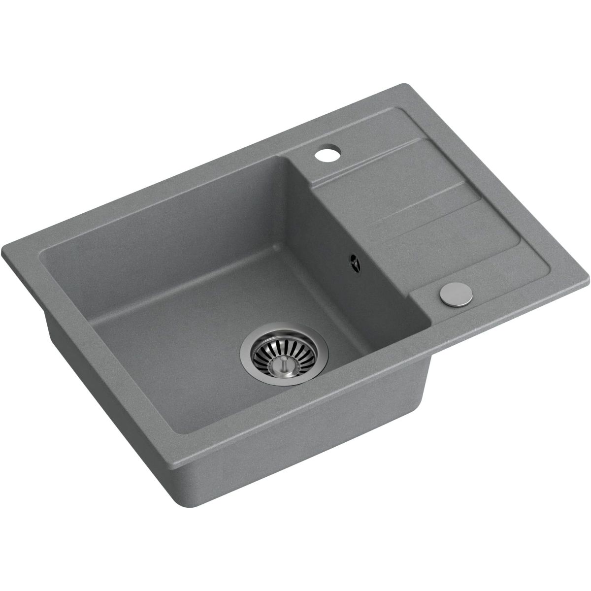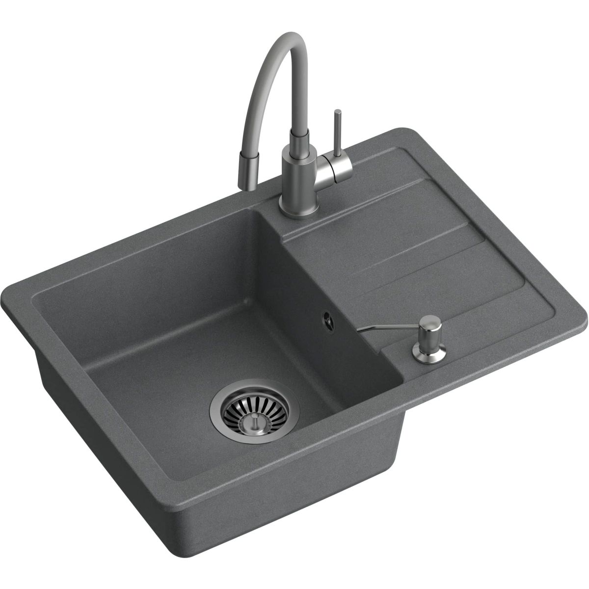 1. Wendbare Spüle mit den Maßen 62 x 44 x 17,5 cm aus GraniteQ mit manuellem Siphon