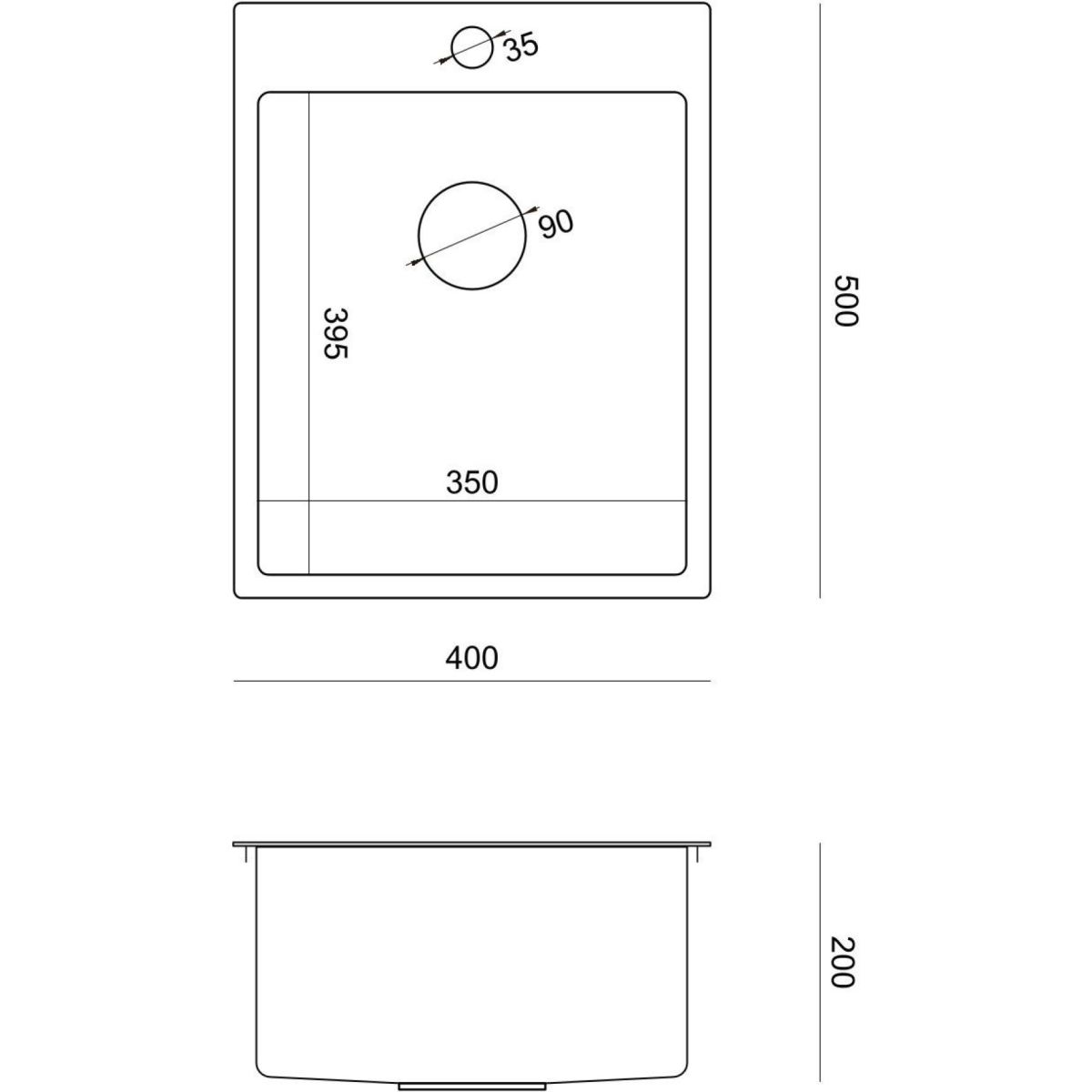 - Die Spüle ist mit einem Abfluss aus Edelstahl SteelQ in einer Farbe ausgestattet, die auf die Farbe der Spüle abgestimmt ist und dem Produkt ein elegantes Aussehen verleiht
