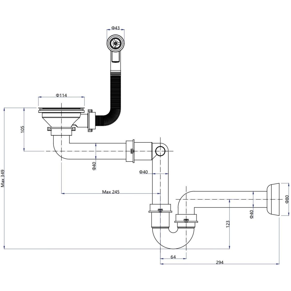 - Typ: Spülbeckensiphon