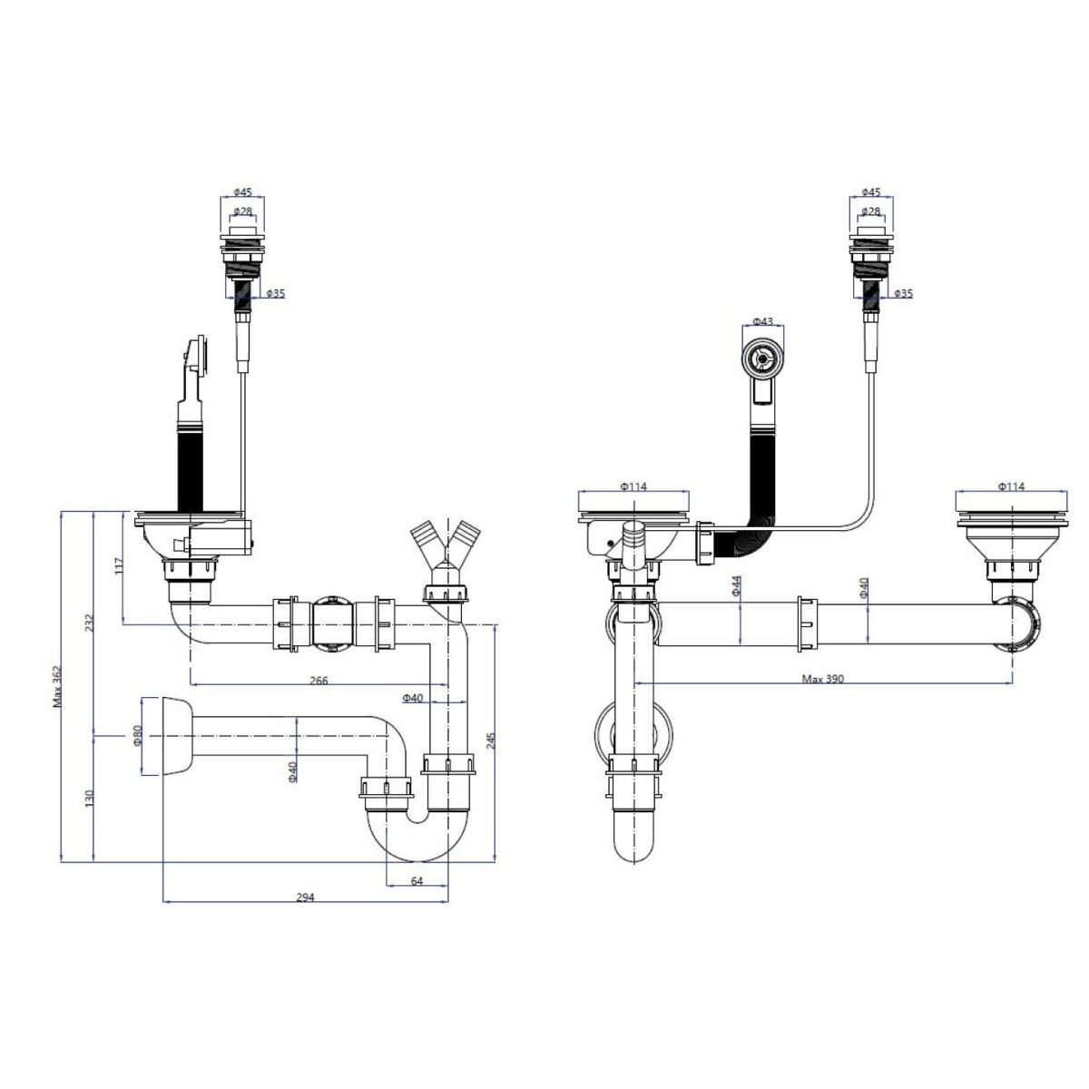 Quadron Save Space Power Color 2-Kammer-Spülbeckensiphon 3,5'' Pure Carbon