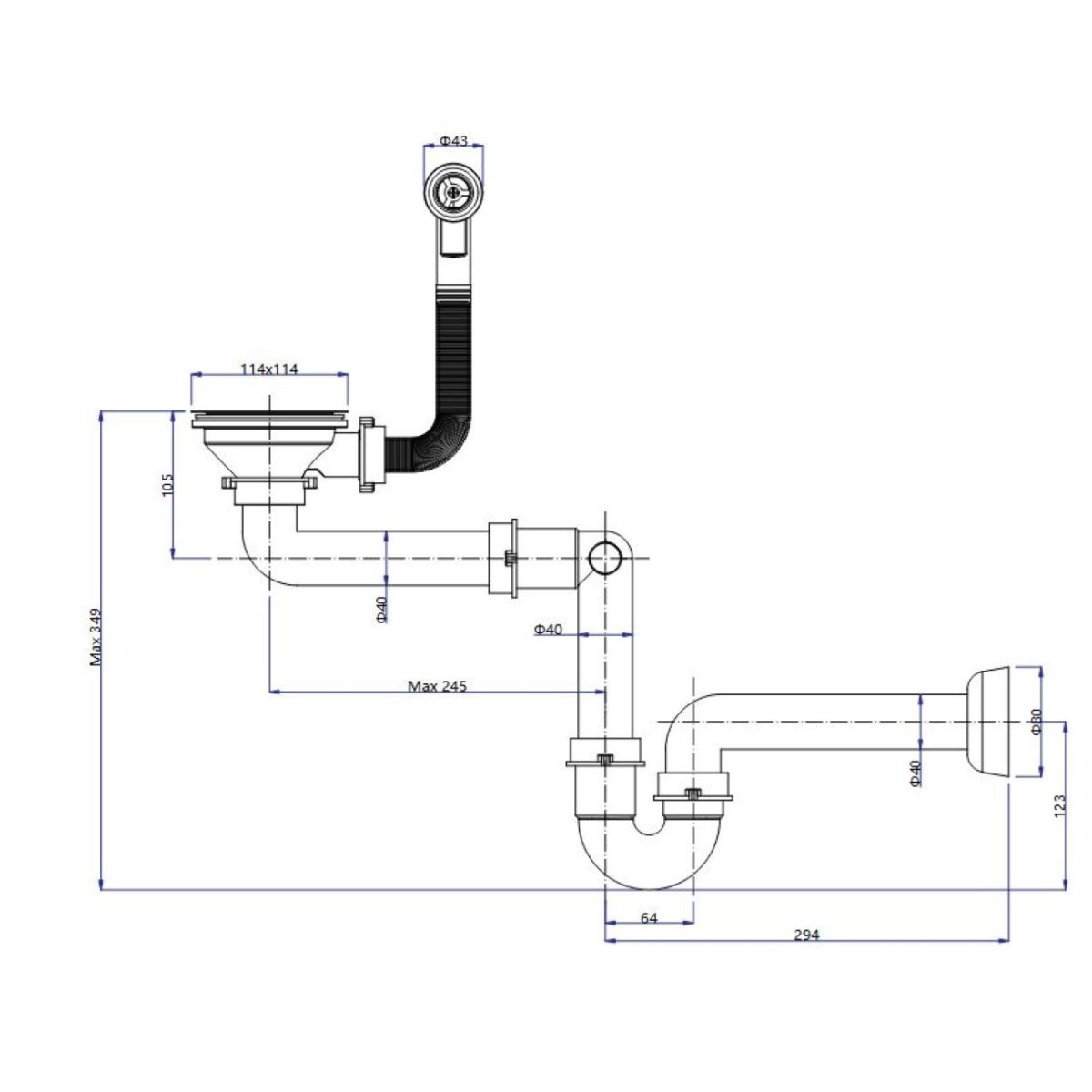 - Typ: Spülbeckensiphon