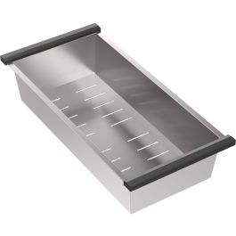 Die Stahl-Abtropfschale Quadron ist eine perfekte Ergänzung für Ihre Küchenspüle. Sie besteht aus Edelstahl, wodurch sie widerstandsfähig gegen mechanische Beschädigungen und schwierige Nutzungsbedingungen ist. Außerdem ist sie leicht zu reinigen, was die Hygiene in der Küche gewährleistet. An den Rändern der Spüle angebracht, bietet sie zusätzlichen Platz zum Ablegen von gewaschenem Obst, Gemüse oder Besteck. Die mit Kunststoffgriffen gesicherten Enden des Produkts erleichtern das Verschieben und verhindern Kratzer. Die robuste Konstruktion, die praktischen Griffe und die einfache Reinigung machen sie zur idealen Lösung für alle, die Komfort und Funktionalität in der Küche schätzen.