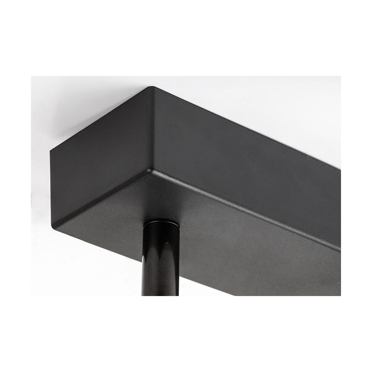 Die im industriellen Stil gehaltene Doppel-Spotleuchte Aberama eignet sich vor allem für Wohn- oder Schlafzimmer. Die vollständig aus Kunststoff gefertigte schwarze Leuchte wird durch unten offene kugelförmige Schirme ergänzt und kann mit einem rechteckigen Sockel an der Decke befestigt werden. Dank der in einer Reihe angeordneten beweglichen Köpfe kann das Licht nach Belieben ausgerichtet werden.