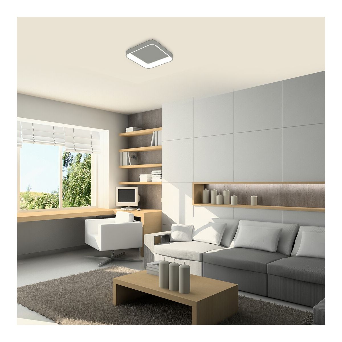 Die minimalistische Deckenleuchte Adeline ist eine hervorragende Wahl für Ihr Wohnzimmer, Schlafzimmer oder Arbeitszimmer. Diese elegante graue Leuchte mit weißem Lampenschirm zeichnet sich durch viele außergewöhnliche Eigenschaften aus: Sie ist dimmbar, sodass ihre Helligkeit mit einer Fernbedienung beliebig eingestellt werden kann. Je nach Ihrer Wahl kann die Lampe warmes, natürliches oder weißes Licht ausstrahlen. Darüber hinaus verfügt die Lampe Adeline aus Metall mit abgerundeten Ecken und einem Acryldiffusor über eine Nachtlicht- und Speicherfunktion, die über einen Wandschalter oder eine Fernbedienung gesteuert werden kann.