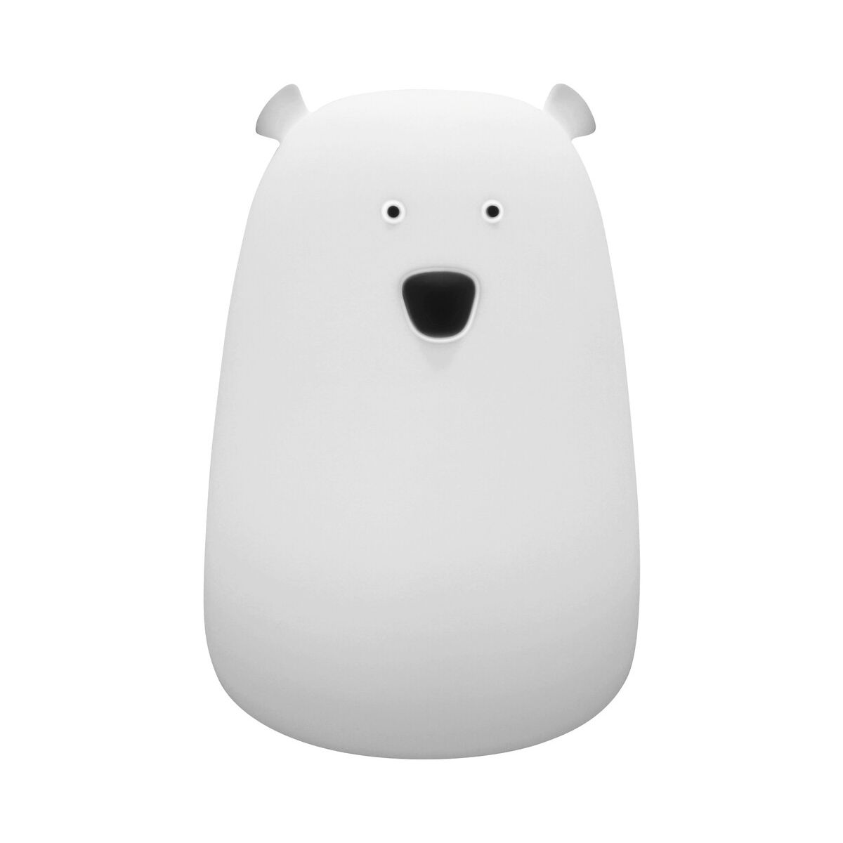Die dekorative Lampe Baloo aus weichem Silikon kann zu einem Lieblingsaccessoire im Kinderzimmer werden. Die niedliche Bärenfigur kann auf dem Nachttisch oder einem Regal platziert werden; ihre warme weiße Farbe schafft eine angenehme Atmosphäre und wirkt beruhigend auf die Kleinsten. Wenn Sie aus irgendeinem Grund mitten in der Nacht das Kinderzimmer betreten müssen, ist ein wenig dezentes Licht hilfreich. Baloo verfügt über einen Lithium-Ionen-Akku, sodass Sie selbst entscheiden können, wo Sie ihn aufstellen möchten. Das weiße Modell verfügt über eine integrierte LED-Lichtquelle mit einer Leistung von 0,4 W, einer Lichtstärke von 29 Lumen und einer Farbtemperatur von 3000 K. Dank der RGB-Funktion kann die Baloo-Lampe jedoch rotes, grünes oder blaues Licht ausstrahlen. Abmessungen der dekorativen Leuchte, die über einen Klick-Schalter bedient werden kann.