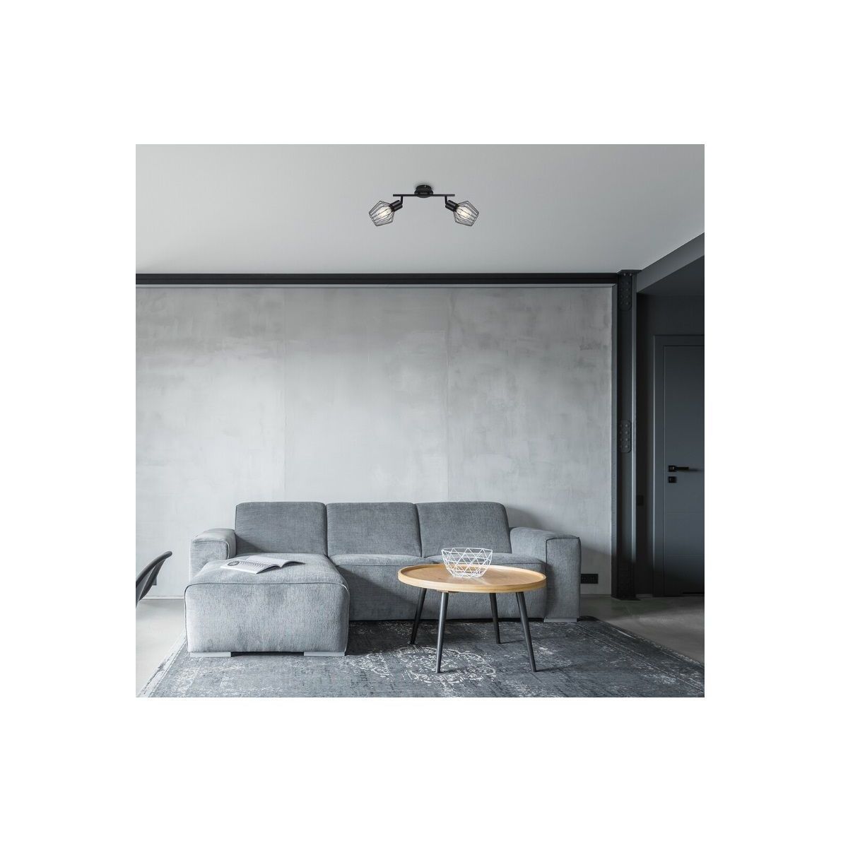 Die doppelte Spotleuchte Belano im Industrial-Stil ist ein stilvolles Element für Ihr Wohnzimmer, Schlafzimmer oder Arbeitszimmer. Diese vollständig aus Metall gefertigte schwarze Leuchte ist dank ihrer Gitterlampenschirme einzigartig und kann mit einem runden Zierfuß befestigt werden.