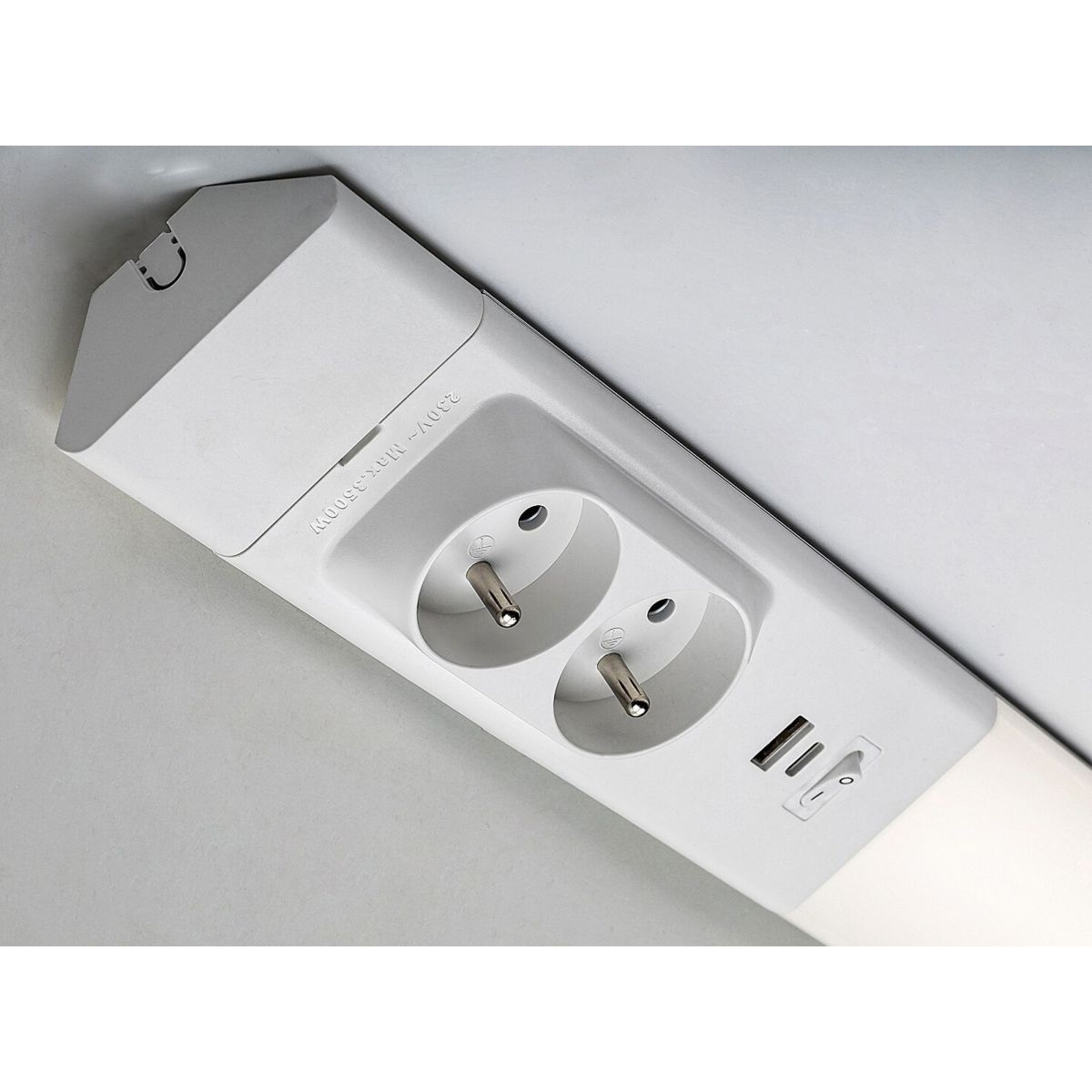 - Ausgestattet mit einem Schalter und zwei integrierten Steckdosen