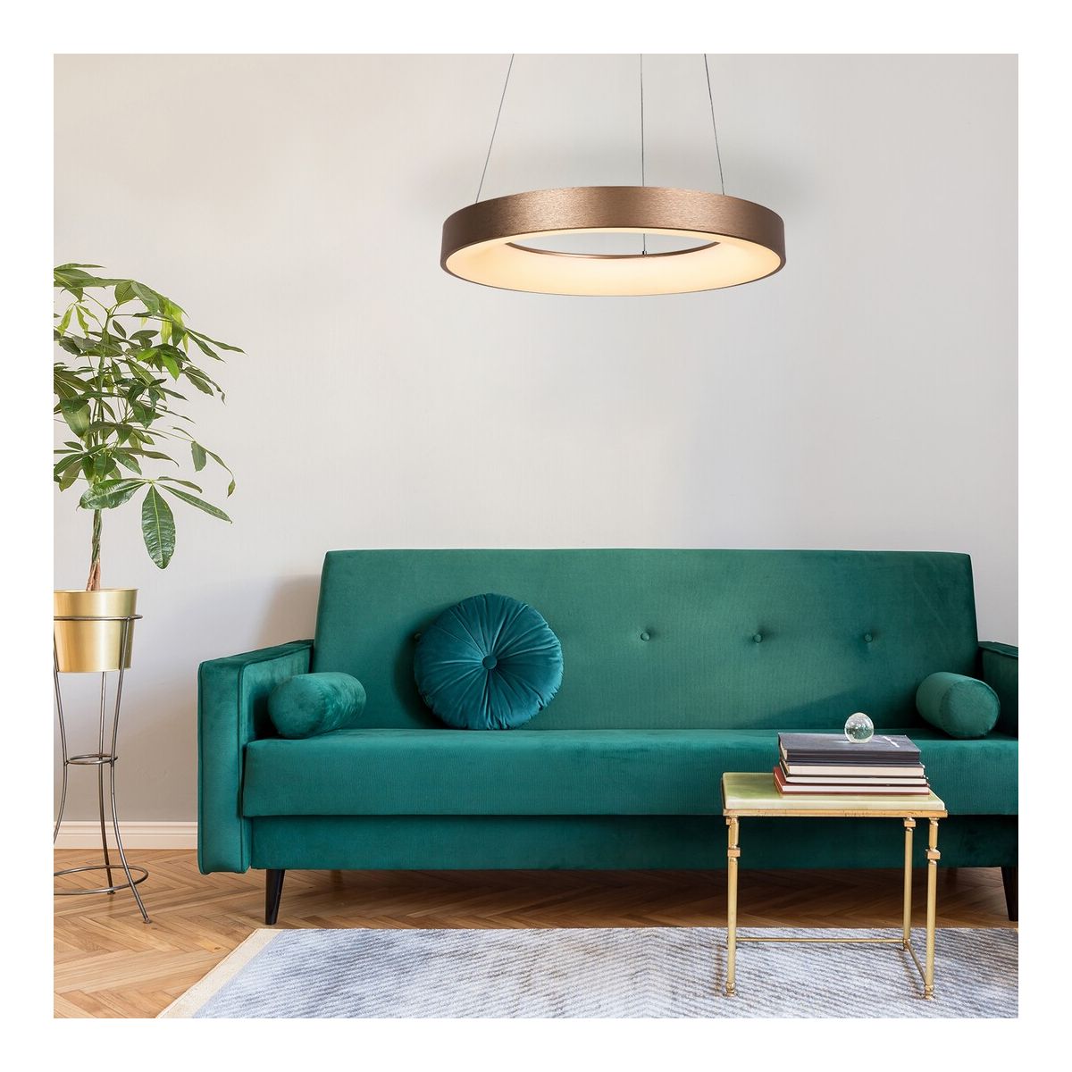 Dank seines eleganten Stils ist dieser große gold-weiße Kronleuchter Carmella eine ausgezeichnete Wahl für viele Häuser mit moderner Einrichtung. Wir empfehlen dieses runde Modell aus Metall und Acryl für das Wohnzimmer, um dank des natürlichen weißen Lichts einen klaren, modernen Effekt im Raum zu erzielen. Aufgrund seiner Größe kann dieses Modell einen recht großen Bereich ausleuchten und ist daher auch für geräumigere Räume zu empfehlen.