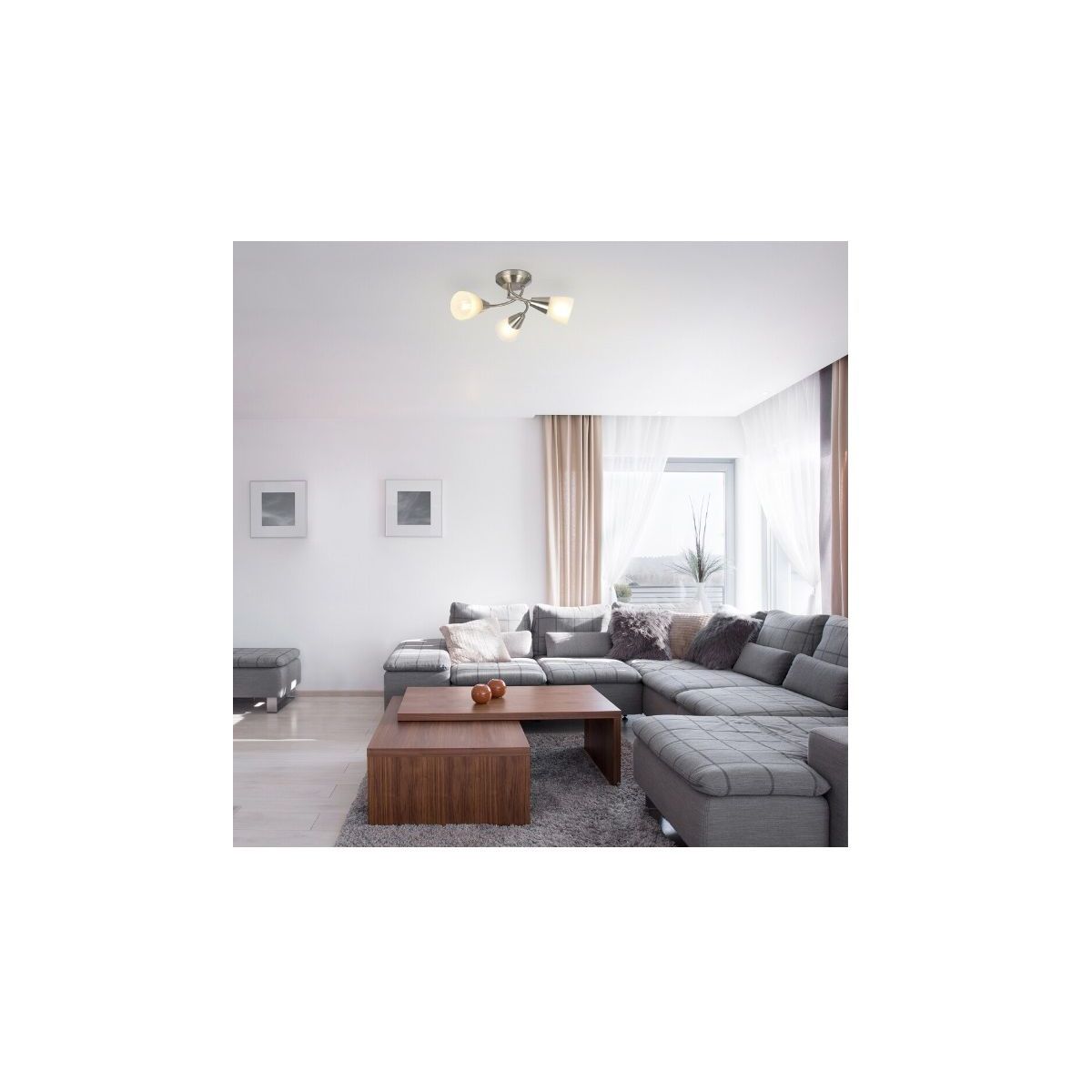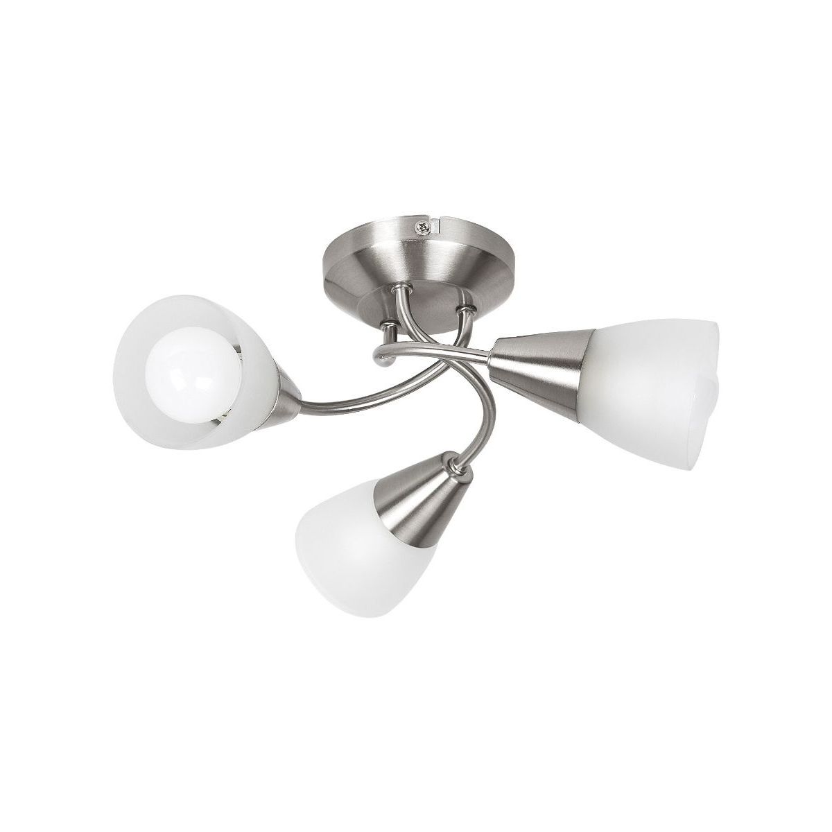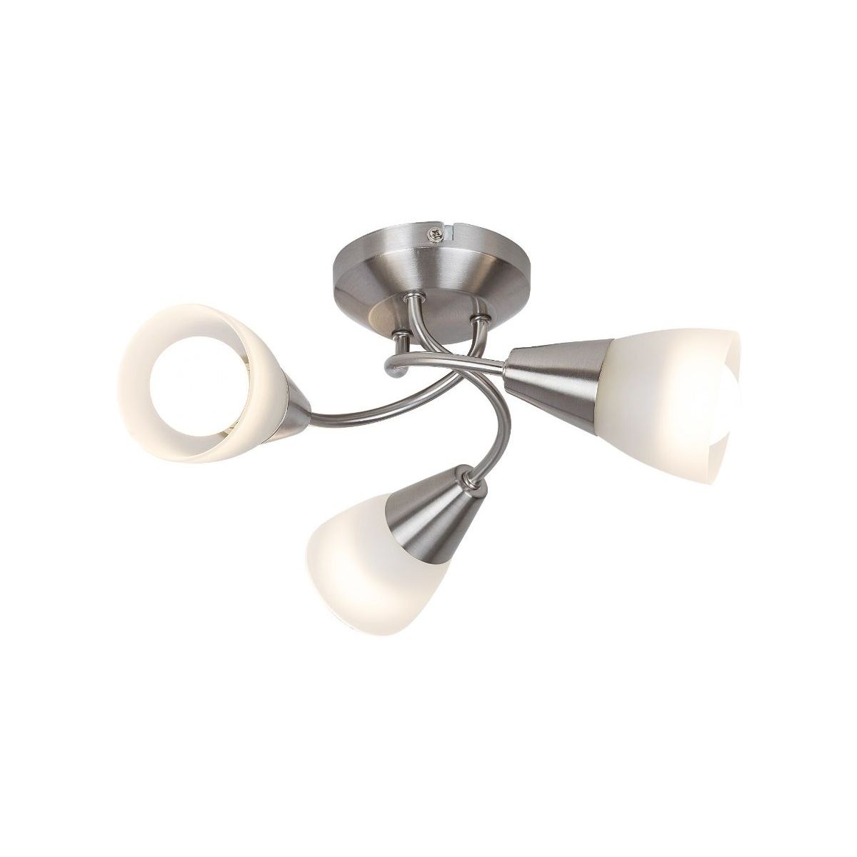 Die Deckenleuchte Connor repräsentiert den traditionellen Stil. Sie kann im Wohn- oder Schlafzimmer installiert werden und sorgt dank der in verschiedene Richtungen ausgerichteten Lampenschirme für eine makellose Ausleuchtung des Raumes. Die satinierte Chromfassung aus Metall wird durch Lampenschirme aus Opalglas ergänzt.