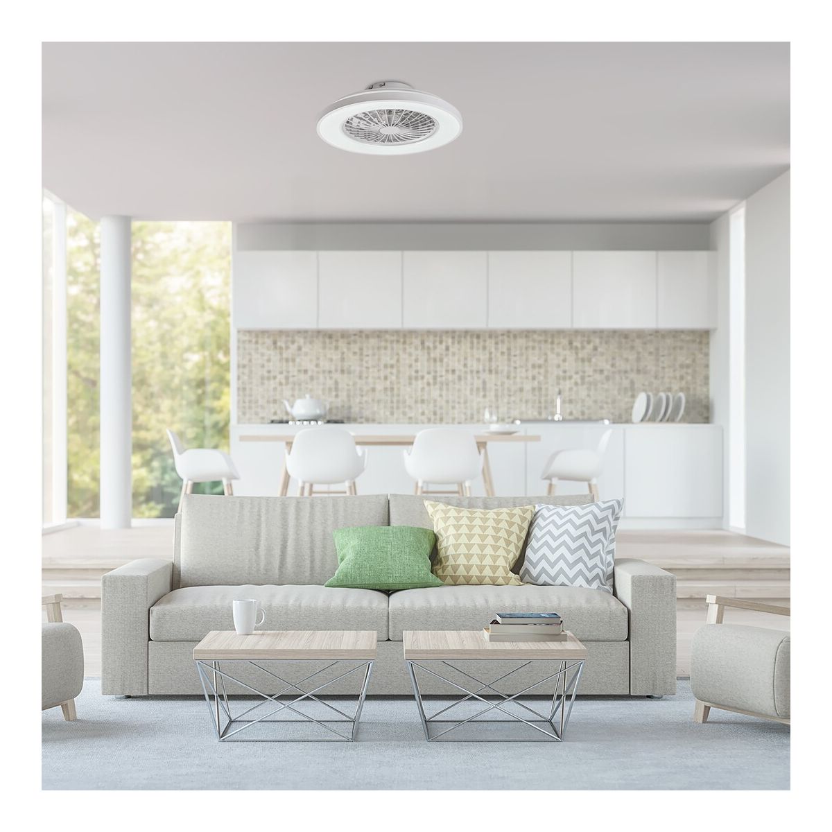 Die moderne Deckenleuchte Dalfon bietet viel mehr als nur durchschnittliche Beleuchtung: Sie verfügt über einen eingebauten Ventilator und weitere außergewöhnliche Funktionen. Dieses Modell mit Sterneneffekt eignet sich perfekt für das Wohnzimmer, das Schlafzimmer oder das Arbeitszimmer.
