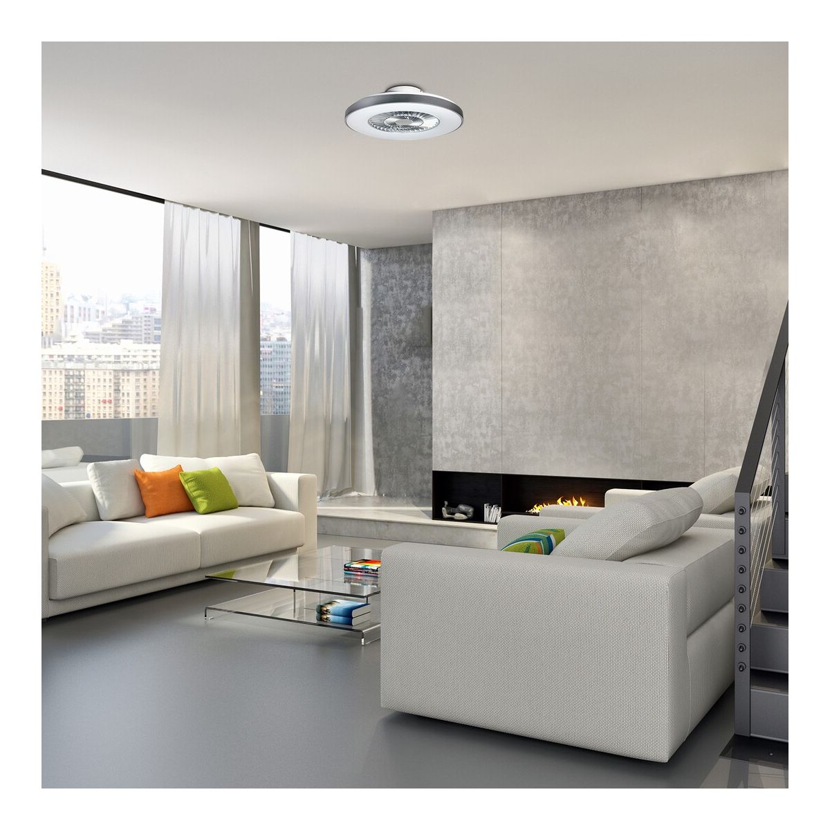 Die moderne Deckenleuchte Dalfon bietet viel mehr als eine durchschnittliche Beleuchtung: Sie verfügt über einen eingebauten Ventilator und bietet einige weitere großartige Zusatzfunktionen. Das in Silber-Weiß gehaltene, runde Modell ist die perfekte Wahl für Ihr Wohnzimmer, Schlafzimmer oder Arbeitszimmer. Es besteht aus Metall und hat einen Lampenschirm aus Kunststoff. Die Dalfon-Lampe ist dimmbar, d. h. ihre Helligkeit kann beliebig verändert werden. Zusätzlich verfügt die Lampe über eine Nachtlichtfunktion. Die Geschwindigkeit des Ventilators kann in drei Stufen reguliert werden.