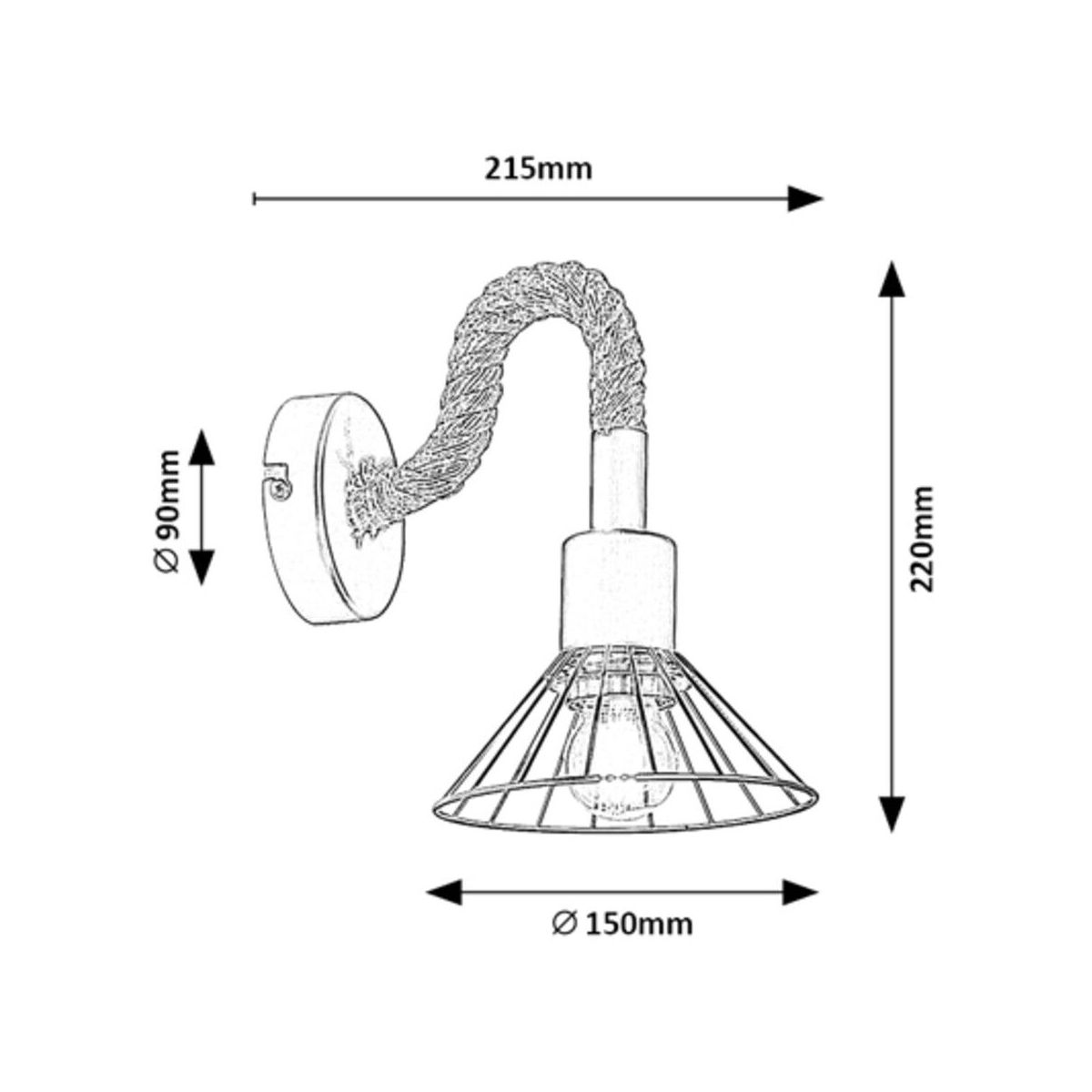 Die Wandleuchte Rabalux Daryl verbindet ein schlichtes Design mit einem originellen, mit Schnur umwickelten Arm. Dieses Detail macht die Leuchte zu einem charakteristischen Accessoire für Innenräume im Loft-, Industrie- oder Rustikalstil. Der schwarze Lampenschirm mit geometrischem Rahmen unterstreicht den modernen Charakter der Wandleuchte. Mit einer Höhe von 22 cm und einer Breite von 21,5 cm eignet sich die Wandleuchte für die Montage neben einem Spiegel oder im Flur, wo es auf Platzersparnis ankommt.