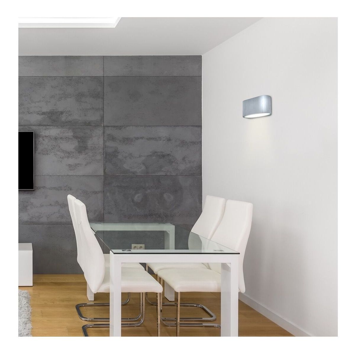 Die minimalistische, ovale Wandleuchte Kaunas ist ein stilvolles Element der Einrichtung eines modernen Wohnzimmers, Schlafzimmers, Arbeitszimmers oder eines anderen Raums, in dem Sie sie platzieren. Wir empfehlen sie vor allem denjenigen, die in einem bestimmten Raum eine gleichmäßige, schattenfreie, nicht blendende und gleichzeitig gemütliche Beleuchtung wünschen. Dieses schöne Modell mit schlichtem Design ist vollständig aus Metall in gebürsteter Aluminiumfarbe gefertigt und kann mit einer Lichtquelle mit einer Leistung von bis zu 10 W und einer G9-Fassung verwendet werden. Wenn Sie eine gemütliche, intime Atmosphäre schaffen möchten, beispielsweise im Wohn- oder Schlafzimmer, wählen Sie für diese Lampe eine Glühbirne, die warmes, weißes Licht ausstrahlt. Wenn Sie Kaunas jedoch in Ihrem Arbeitszimmer installieren, ist es besser, eine Lichtquelle mit natürlicher Tageslichtfarbe zu verwenden, die Ihnen hilft, sich besser zu konzentrieren. Abmessungen: Breite 16 cm, Höhe 8 cm, Abstand zur Wand 8 cm. Dieses Modell wird ohne Lichtquelle geliefert.