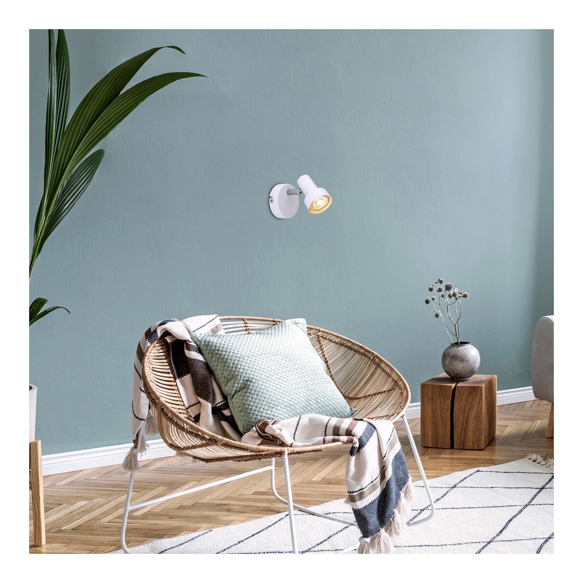 Die klassische Spotbeleuchtung Konrad ist ein frisches, angenehmes Element für die Einrichtung Ihres Wohnzimmers, Schlafzimmers oder Kinderzimmers. Sie passt perfekt zu fast jedem Interieur, das mit hellen Pastellfarben gestaltet ist. Dieses mattweiße Modell ist vollständig aus Metall gefertigt und kann mit einem runden Ziersockel an der Wand befestigt werden. Der Lampenschirm ist zylindrisch und nach unten hin erweitert.