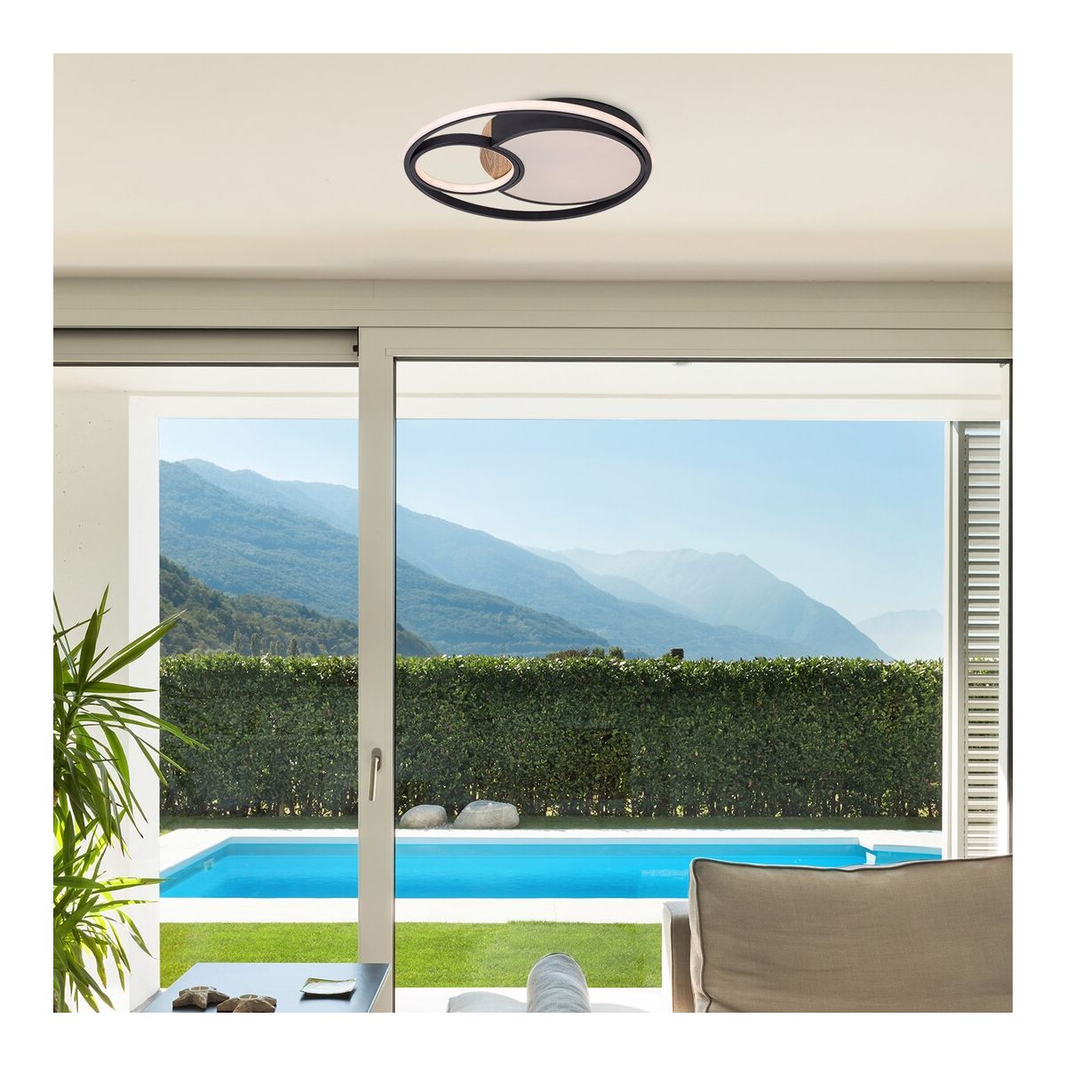 Die integrierte LED-Lichtquelle mit einer Leistung von 81 W sorgt für einen Lichtstrom von 3800 lm, sodass die Leuchte auch größere Räume effektiv ausleuchtet. Durch die Auswahl der Farbtemperatur (3000, 4000, 6000 K) kann die Beleuchtung an die jeweilige Situation angepasst werden – von warmem Licht, das die Entspannung fördert, bis hin zu kühlem Weiß, das die Konzentration erleichtert. Die Dimmfunktion ermöglicht eine präzise Einstellung der Lichtintensität.
