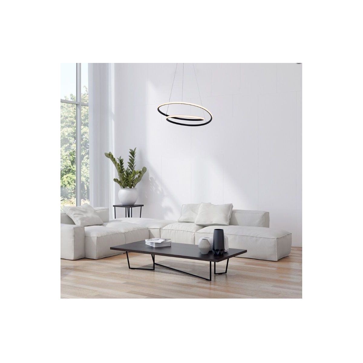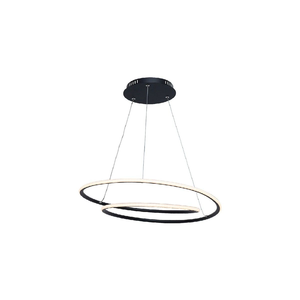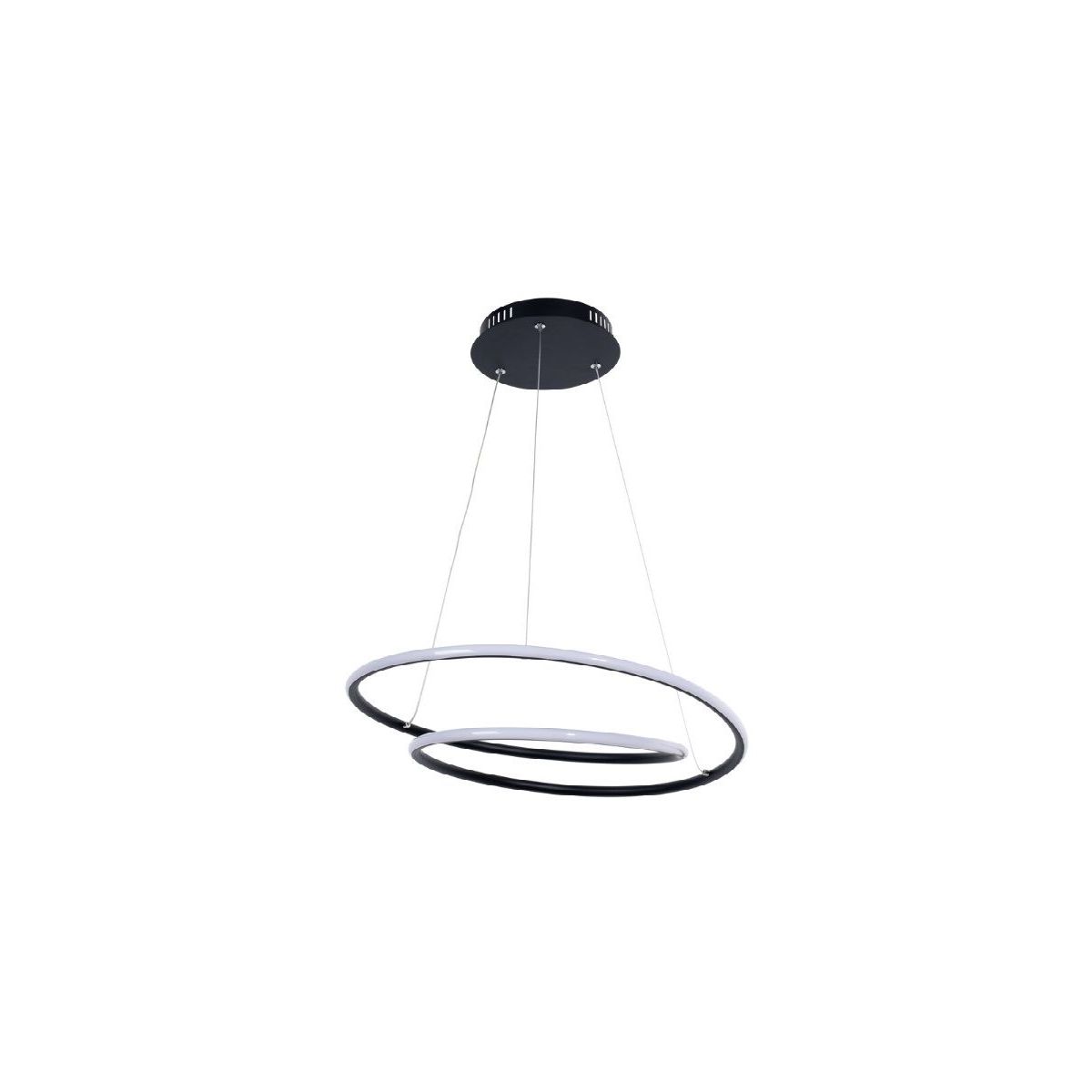 Die Deckenleuchte Meridia mit ihrem modernen Design wird ein aufregendes und stilvolles Element in Ihrem Wohn- oder Schlafzimmer sein. Die mattschwarze Fassung aus Aluminium wird durch einen weißen Lampenschirm aus Kunststoff ergänzt. Der schwarze, runde Sockel der Meridia-Lampe und zwei runde Elemente erinnern an einen Planeten mit zwei ihn umkreisenden Ringen.