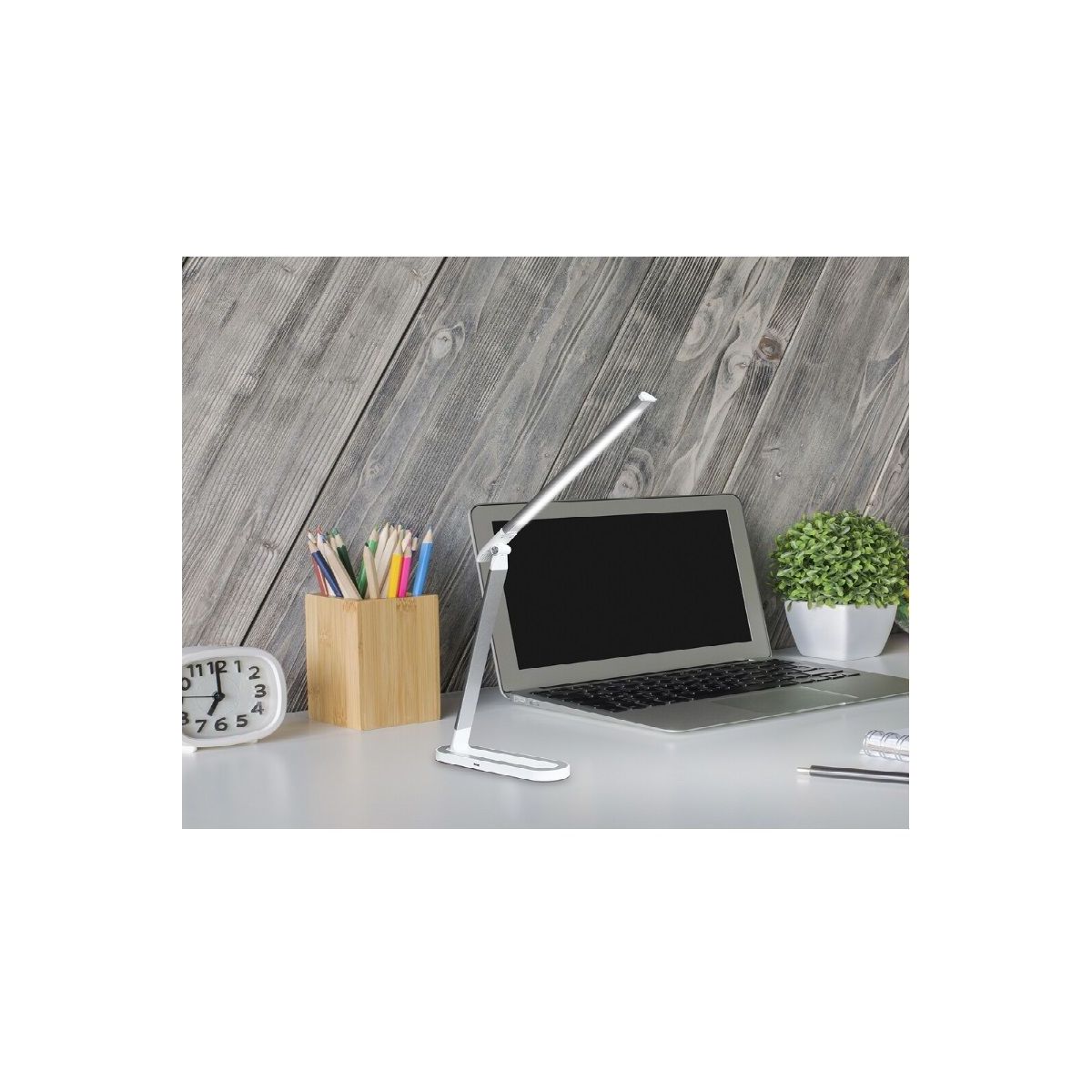 Die moderne Schreibtischlampe Misha ist die perfekte Wahl für Ihr Arbeitszimmer oder Kinderzimmer. Das aus Metall und Kunststoff gefertigte silber-weiße Modell mit seinem natürlichen weißen Licht kann beim Arbeiten oder Lernen am Abend sehr hilfreich sein.