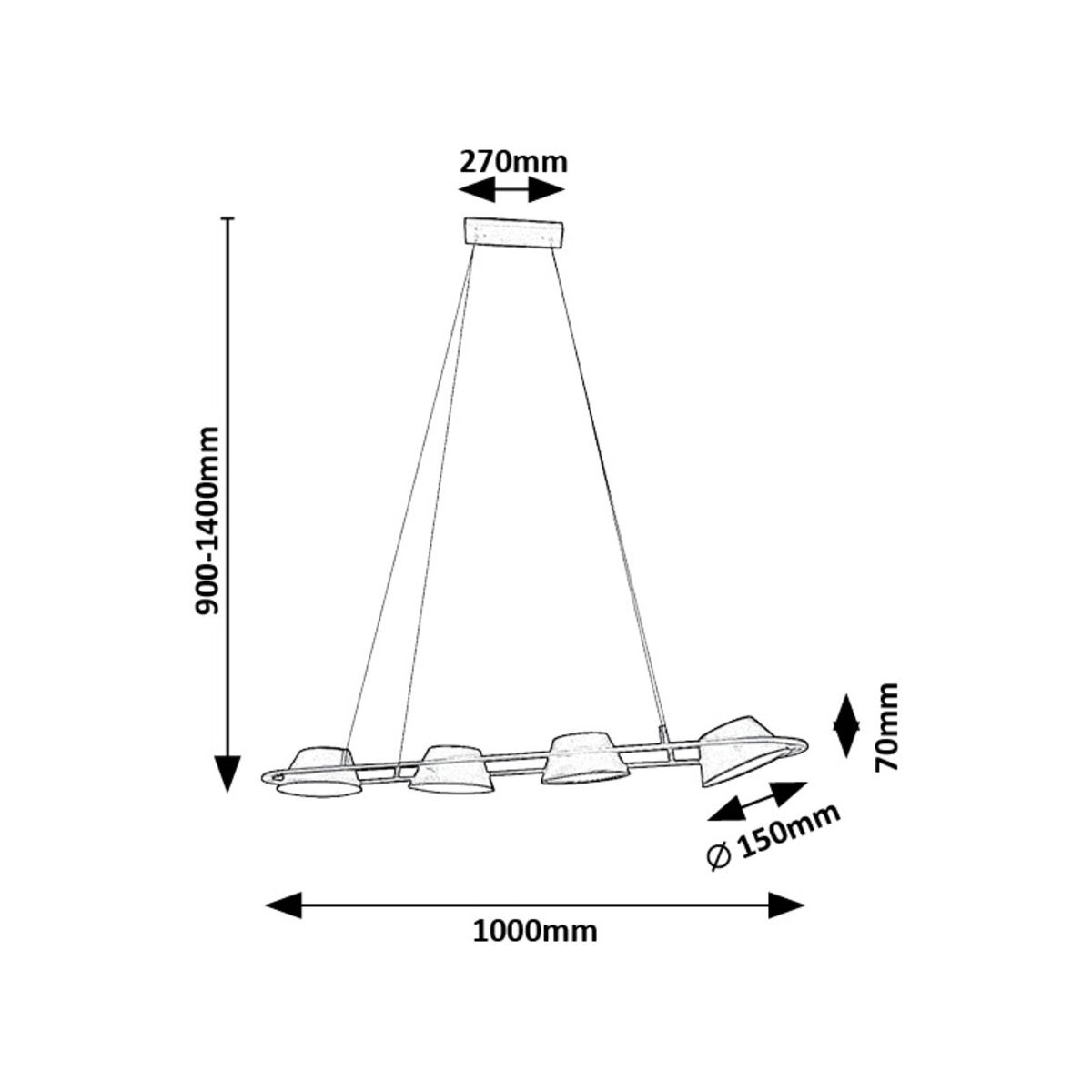 - Durchmesser der einzelnen Lampenschirme: 150 mm