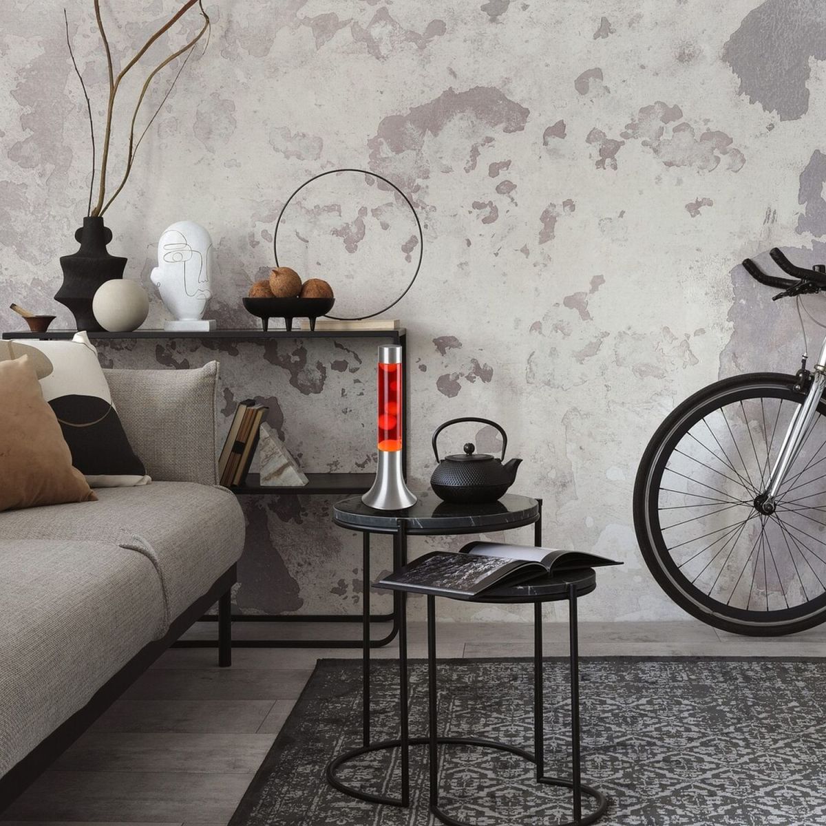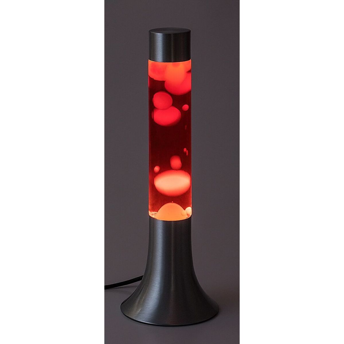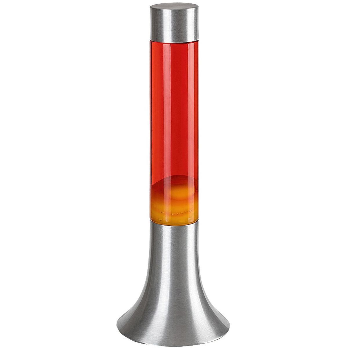 - Im Inneren der Lampe befindet sich eine rote Flüssigkeit mit gelbem Wachs, das sich langsam hin und her bewegt