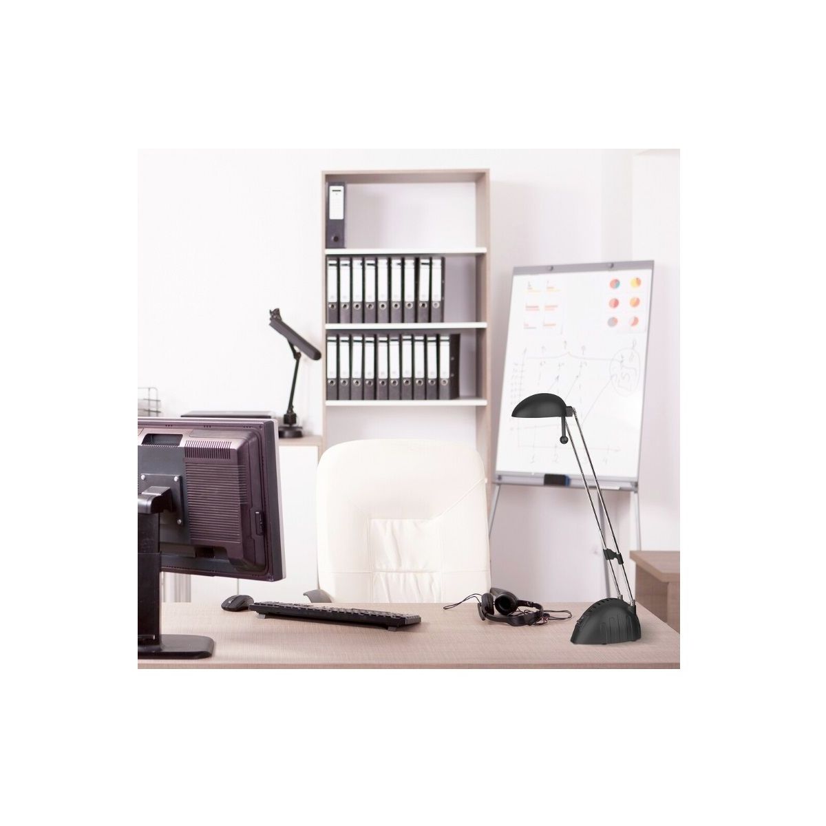 Das Modell ist mit einer integrierten 5-W-LED-Lichtquelle ausgestattet, die standardmäßig mit 230 V betrieben wird. Das neutrale Weißlicht (4000 K) sorgt für Sehkomfort, gibt Farben originalgetreu wieder und fördert die Konzentration bei alltäglichen Aufgaben. Der Lichtstrom von 350 lm beleuchtet die Tischplatte gleichmäßig, ohne zu blenden.