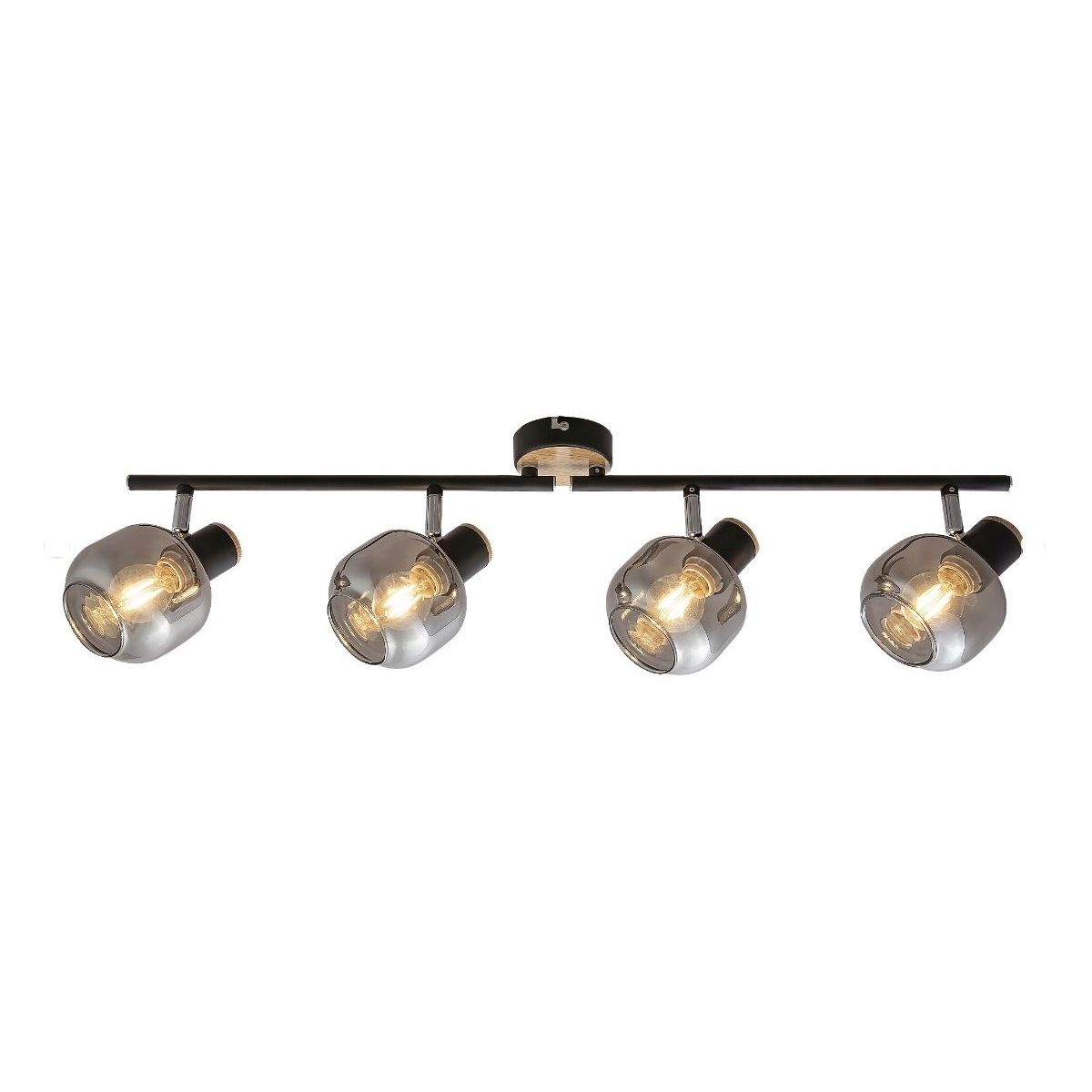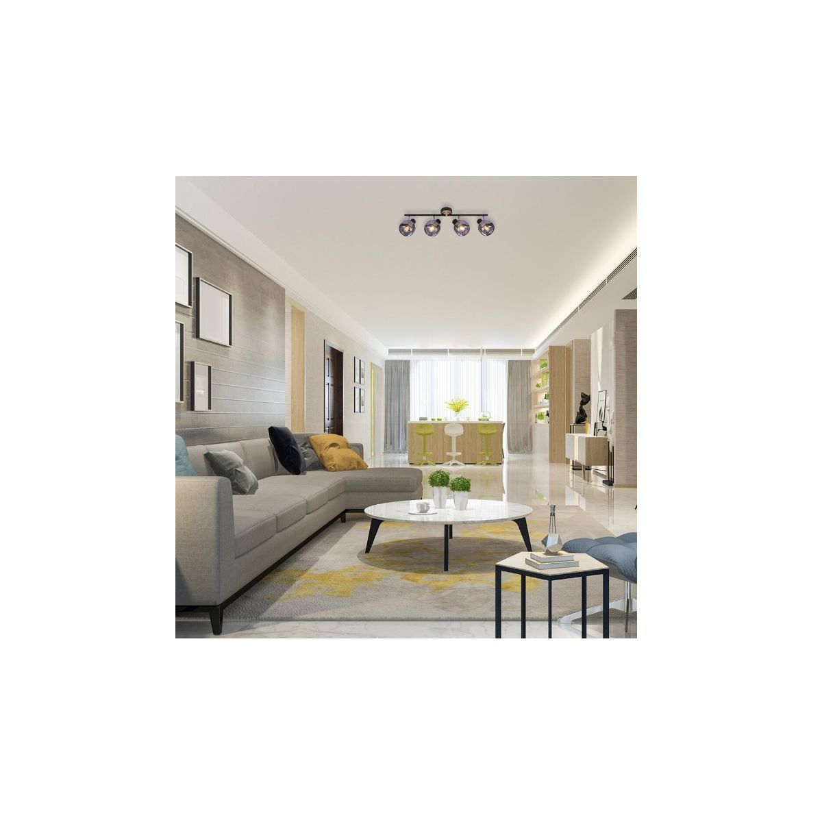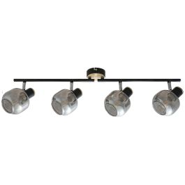 Der vierfache Salazar-Reflektor aus einer Kombination von Metall und Glas ist ein charakteristisches Accessoire für Ihre Einrichtung im industriellen Stil. Wir empfehlen ihn vor allem für das Wohnzimmer, aber Sie können ihn auch im Flur aufstellen. Sein schwarzes Gehäuse erinnert an Eichenholz und wird durch einen runden dekorativen Sockel und einen rauchfarbenen Lampenschirm ergänzt. Die vier Lampenschirme sind in einer Linie angeordnet, aber dank der verstellbaren Köpfe können Sie das von ihnen ausgestrahlte Licht lenken.