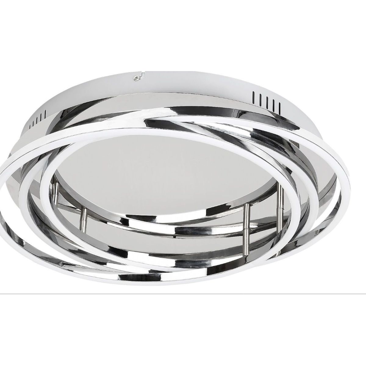 Die Deckenleuchte Selena ist eine außergewöhnliche Ergänzung für das moderne Interieur Ihres Wohnzimmers. Das Modell in Chromfarbe ist aus Metall gefertigt und zeichnet sich durch sein einzigartiges Design mit unregelmäßigen, runden Formen aus. Die Deckenleuchte verfügt über eine integrierte LED-Lichtquelle. Die Leistung der Lichtquelle beträgt 40 W, die Helligkeit 3200 Lumen und die Lebensdauer 20.000 Stunden. Die Farbtemperatur der Lampe beträgt 4000 K, sodass sie die Umgebung mit natürlichem, weißem Licht beleuchtet. Die Lampe Selena verfügt außerdem über eine zusätzliche Funktion: Sie kann über einen Wandschalter in 3 Stufen gedimmt werden, sodass Sie die Helligkeit an Ihre Bedürfnisse anpassen können. Der Durchmesser der runden Lampe beträgt 46 cm, ihr Abstand zur Decke 10 cm. Die Deckenlampe Selena hat eine Garantie von 5 Jahren.