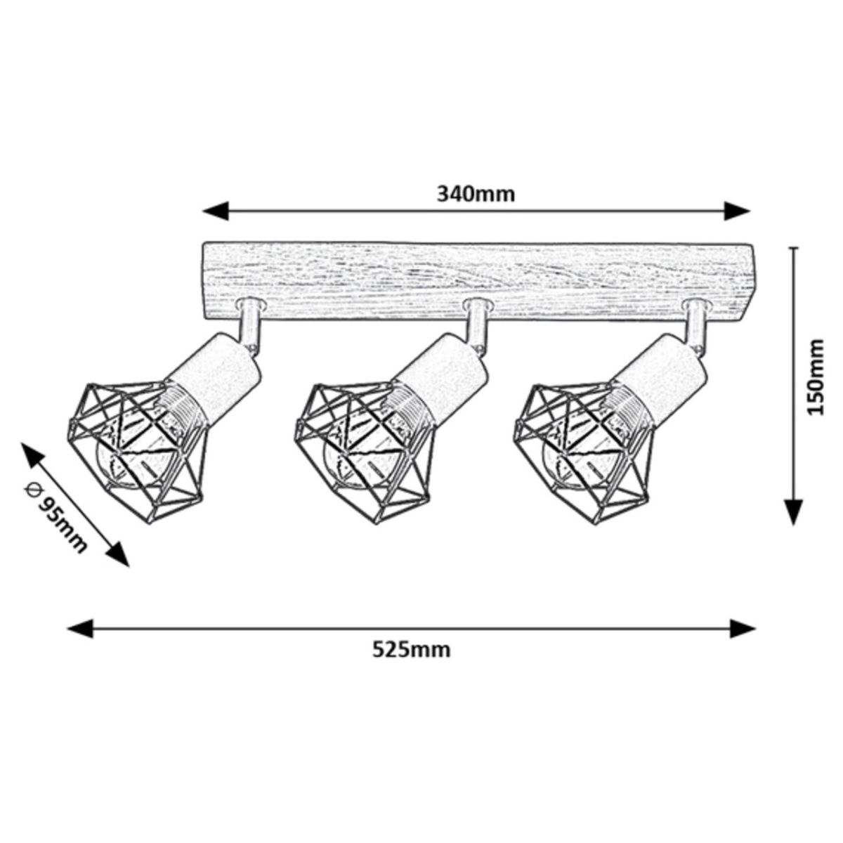 Rabalux Zeus Deckenlampe 3x40 W schwarz-holz 3139