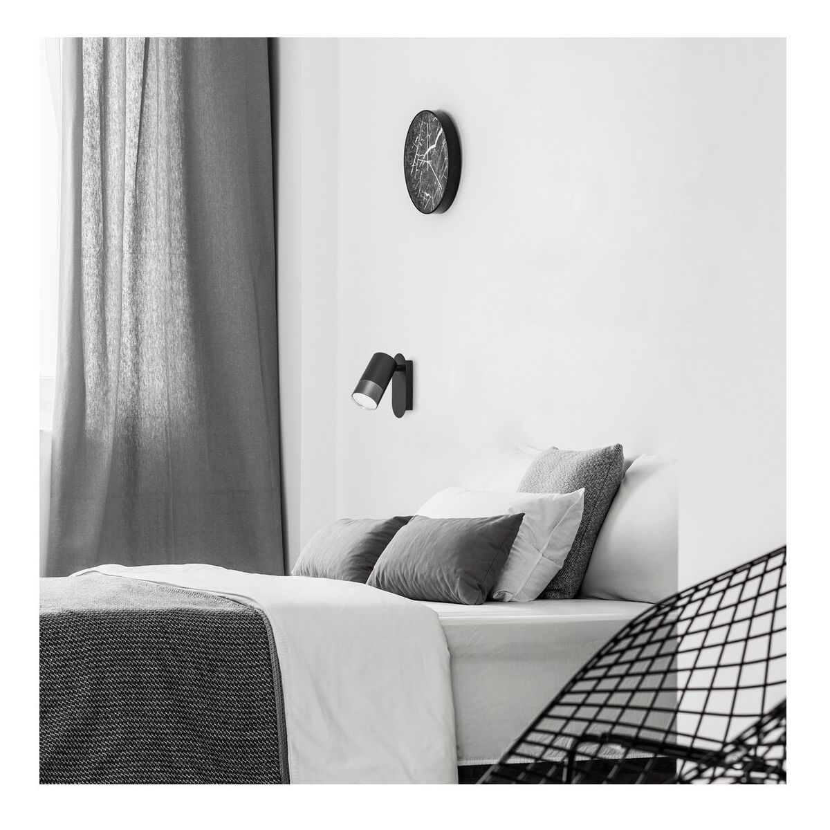 Mit ihrem minimalistischen Design ist die Wandleuchte Zircon ein praktisches Element für Ihr modernes Wohn- oder Schlafzimmer. Dieses vollständig aus Metall gefertigte Modell besteht aus einem schwarzen Rahmen und einem silbernen Lampenschirm. Die Leuchte kann mit einem länglichen, abgerundeten Zierfuß an der Wand befestigt werden. Diese zylindrische Leuchte kann mit einer einzelnen Glühbirne mit einer Leistung von bis zu 5 W verwendet werden. Der Sockeltyp ist GU10. Wenn Sie eine gemütliche, intime Atmosphäre schaffen möchten, wählen Sie für diese Leuchte Glühbirnen, die ein warmes, weißes Licht abgeben. Dank des beweglichen Kopfes der Zirkon-Leuchte können Sie das Licht nach Belieben ausrichten. Die Abmessungen dieser Wandleuchte sind wie folgt: Breite 6 cm, Höhe 13 cm, Durchmesser 5,2 cm, Durchmesser der Basis 13 cm. Dieses Modell wird ohne Leuchtmittel geliefert.