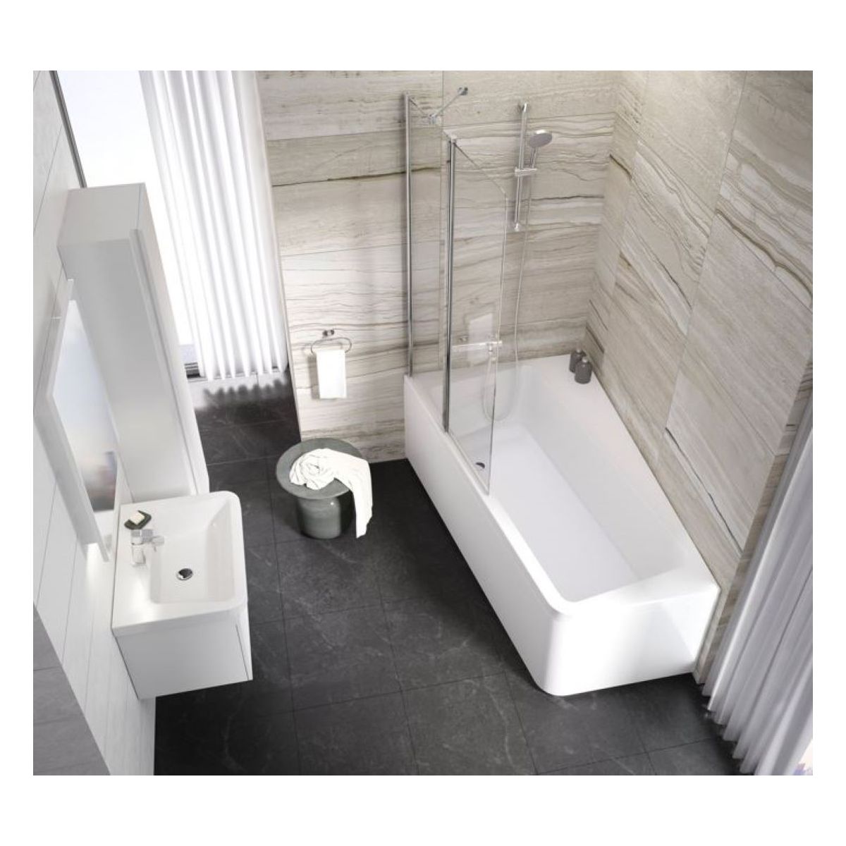 Die hochwertige Glasabtrennung ist für asymmetrische Badewannen mit 10° Neigung geeignet und besteht aus einem festen und einem beweglichen Teil, das nach innen in die Badewanne oder nach außen neben die Badewanne geklappt werden kann. Die Abtrennung erleichtert das Einsteigen in die Badewanne und die Reinigung. Die Halterung zur Befestigung des Glases ist im Lieferumfang enthalten.