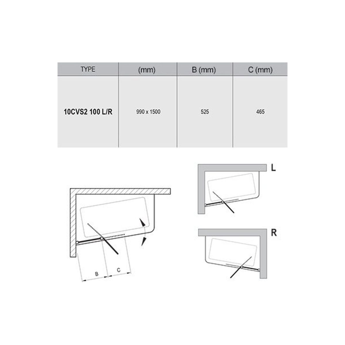 Ravak 10° Badewannenabtrennung 99 cm zweigeteilt satin Matte/durchsichtiges Glas 7QLA0U03Z1