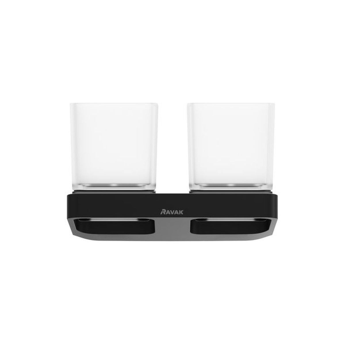 Der schwarze Halter mit zwei Glasbechern im 10°-Design ist ein tolles Accessoire für Zahnbürsten, Zahnpasta oder andere Accessoires, die man griffbereit haben muss. Der Kontrast zwischen mattem Schwarz und milchigem Glas schafft eine einzigartige Kombination stilvoller Accessoires für das moderne Badezimmer.