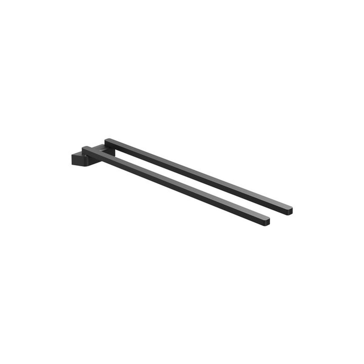 Handtuchhalter in Schwarz mit zwei drehbaren Armen. Der zweiarmige Halter ermöglicht ein praktisches Aufhängen von Handtüchern und ist Teil des Badkonzepts 10°.