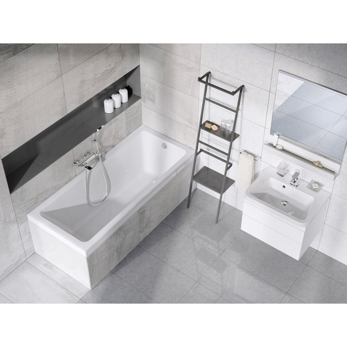Die rechteckige Badewanne 10° kann mit einem Badewannenaufsatz VS2, VS3, VS5, CSV2, PVS1, NVS1, BVS1, BVS2 ergänzt werden. Als Zubehör empfehlen wir eine Front- und Seitenverkleidung sowie ein Badewannen-Ablaufset.
