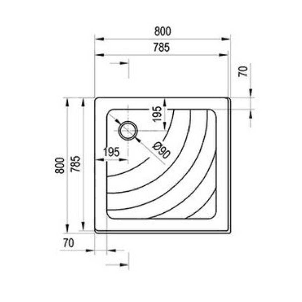 Quadratische, selbsttragende Duschwanne Angela PU. Zusammen mit dem Gehäuse bilden sie eine untrennbare Einheit. Hergestellt aus weißem Acryl mit einer AntiBac®-Schutzschicht. Der Siphon ist nicht im Lieferumfang enthalten.