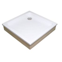 Quadratische, selbsttragende Duschwanne Angela EX ohne Verkleidung, zum selbstständigen Verkleiden, z. B. mit Fliesen. Aus weißem Acryl mit AntiBac®-Schutzschicht.