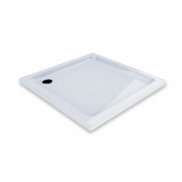 Die quadratische Duschwanne Angela Basic LA ist für die Installation auf Füßen oder zum Einlassen in den Boden vorgesehen. Sie besteht aus weißem Acryl mit einer AntiBac®-Schutzschicht.