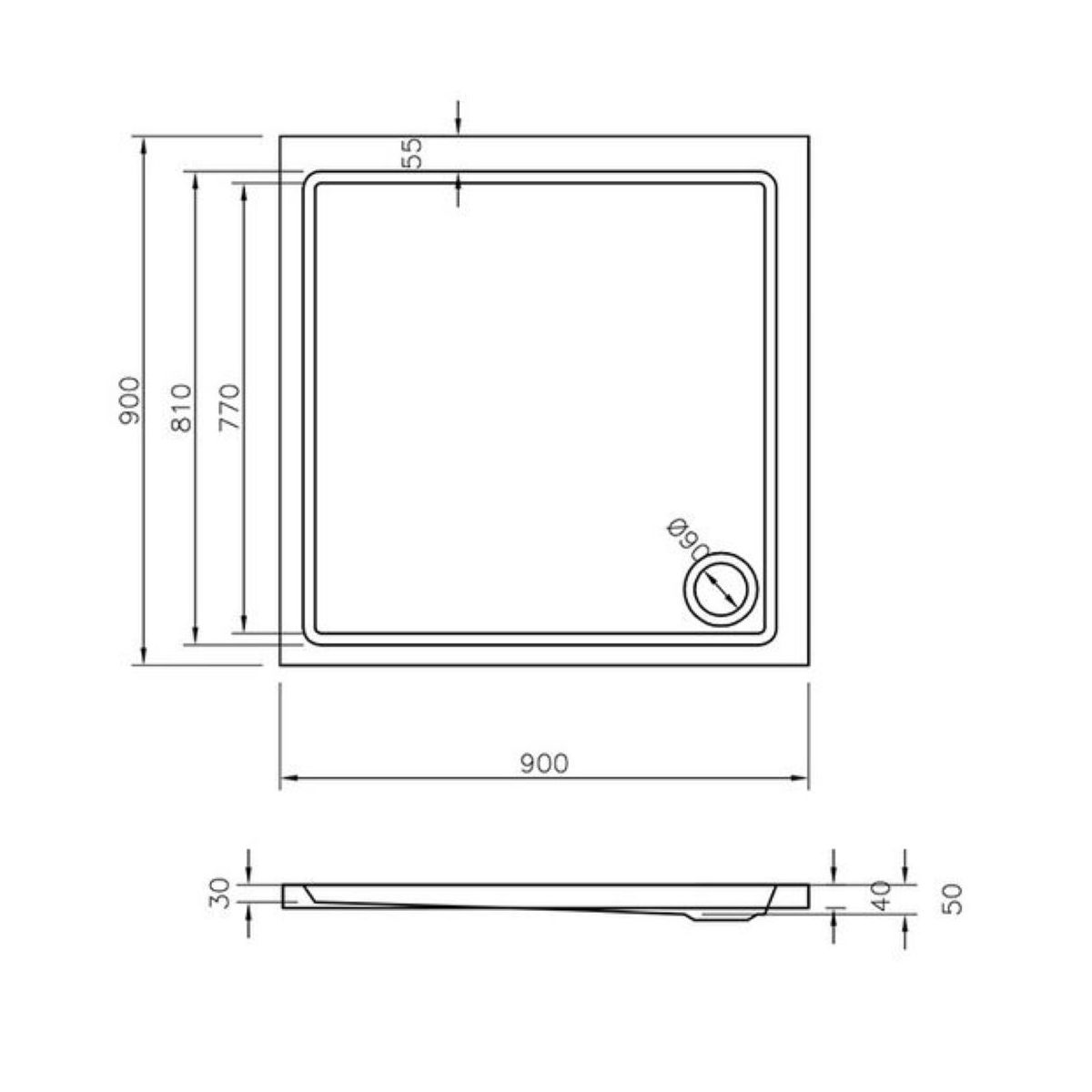 - Tiefe der Duschwanne: 5 cm