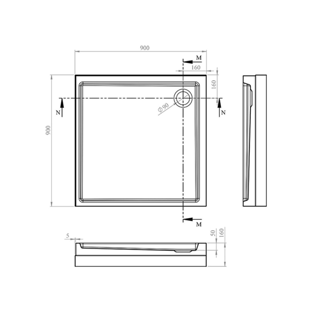 - Tiefe der Duschwanne: 5 cm