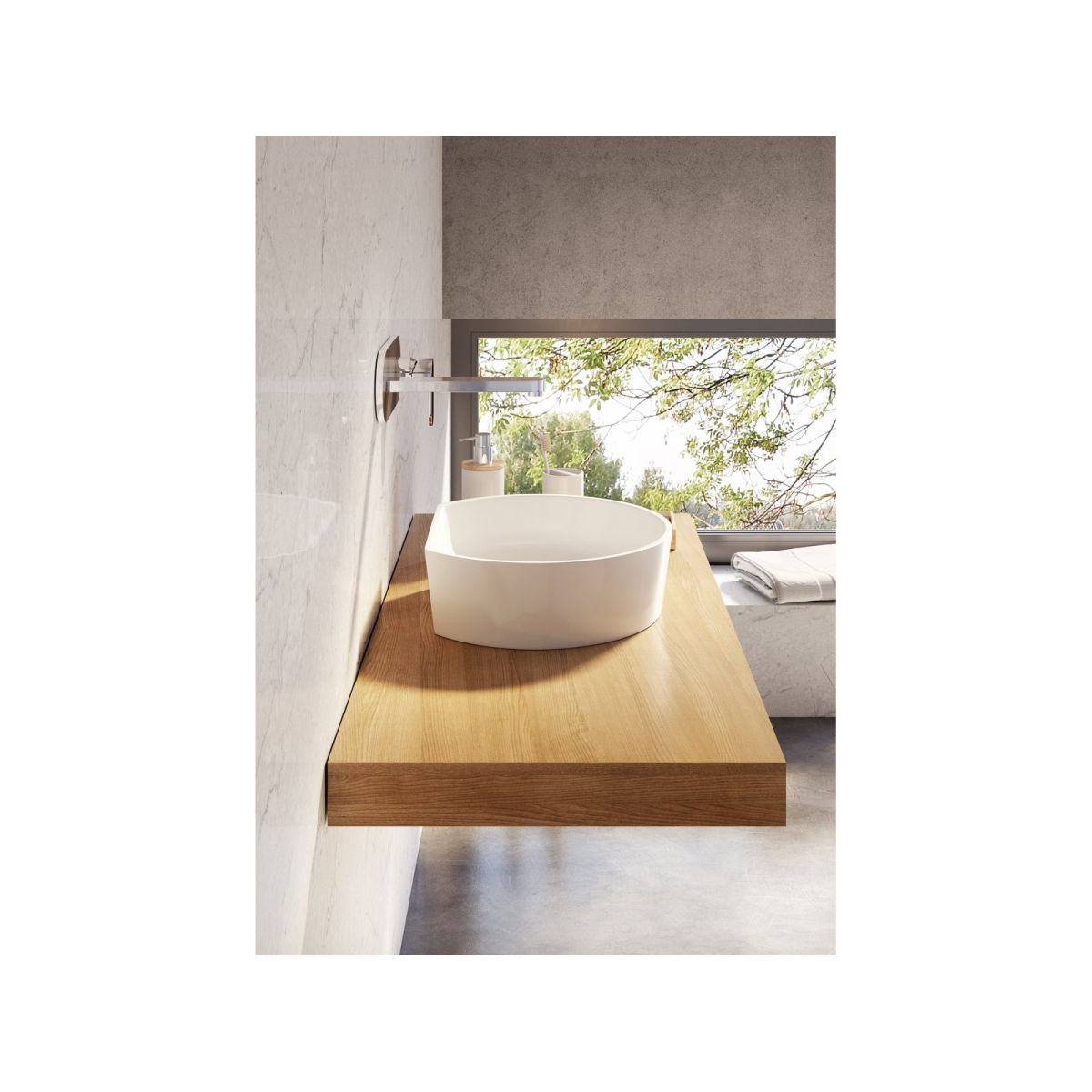 Die Waschtischplatte bietet eine große Ablagefläche.