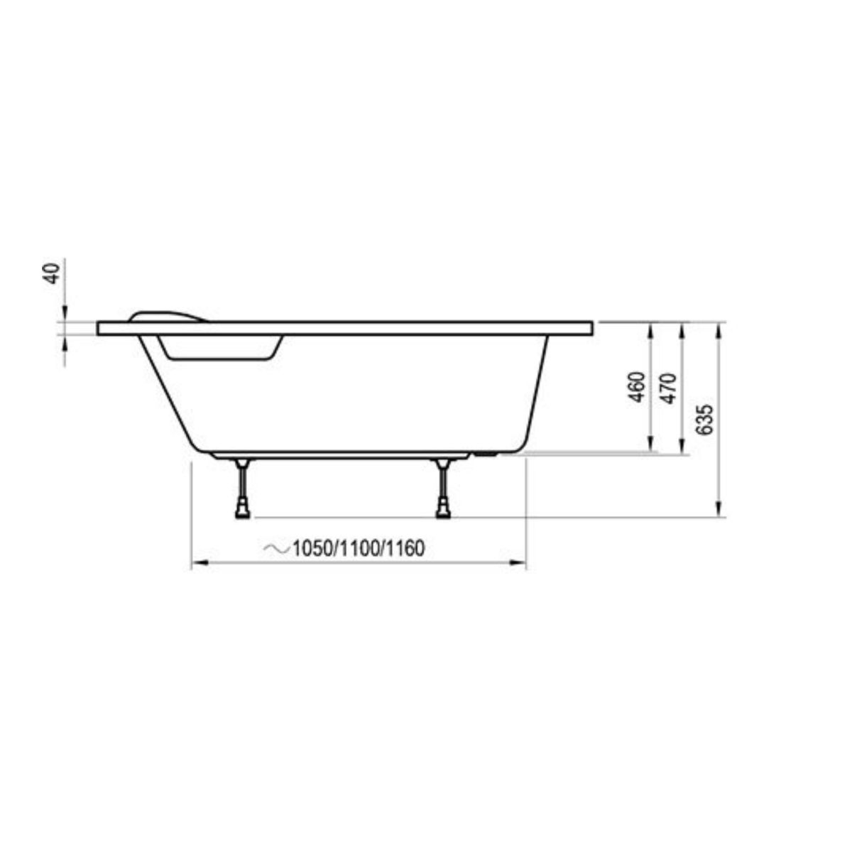 Die technische Zeichnung zeigt die linke Version der Badewanne. Die Preise gelten für die rechte Badewanne.
