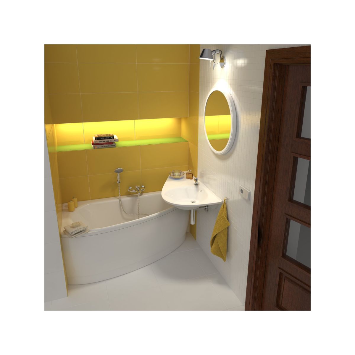 Die Badewanne Avocado zusammen mit dem Waschbecken Avocado ist eine perfekte Lösung für kleinste Badezimmer und bildet eine einheitliche Badezimmerausstattung, das sogenannte Avocado-Konzept.