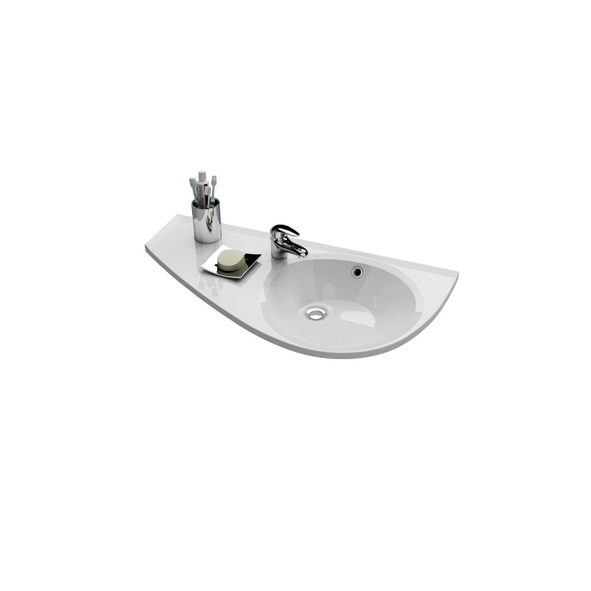 Die Waschtischplatte hat einen rechten Winkel und eignet sich daher auch perfekt für die Ecke. Wählen Sie je nach Standort die linke oder rechte Version.