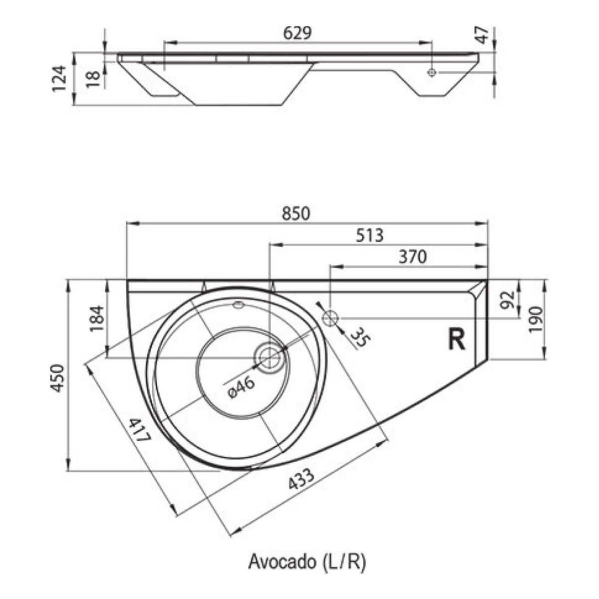 Die Waschtischplatte hat einen rechten Winkel und eignet sich daher auch perfekt für die Ecke. Wählen Sie je nach Standort die linke oder rechte Version.