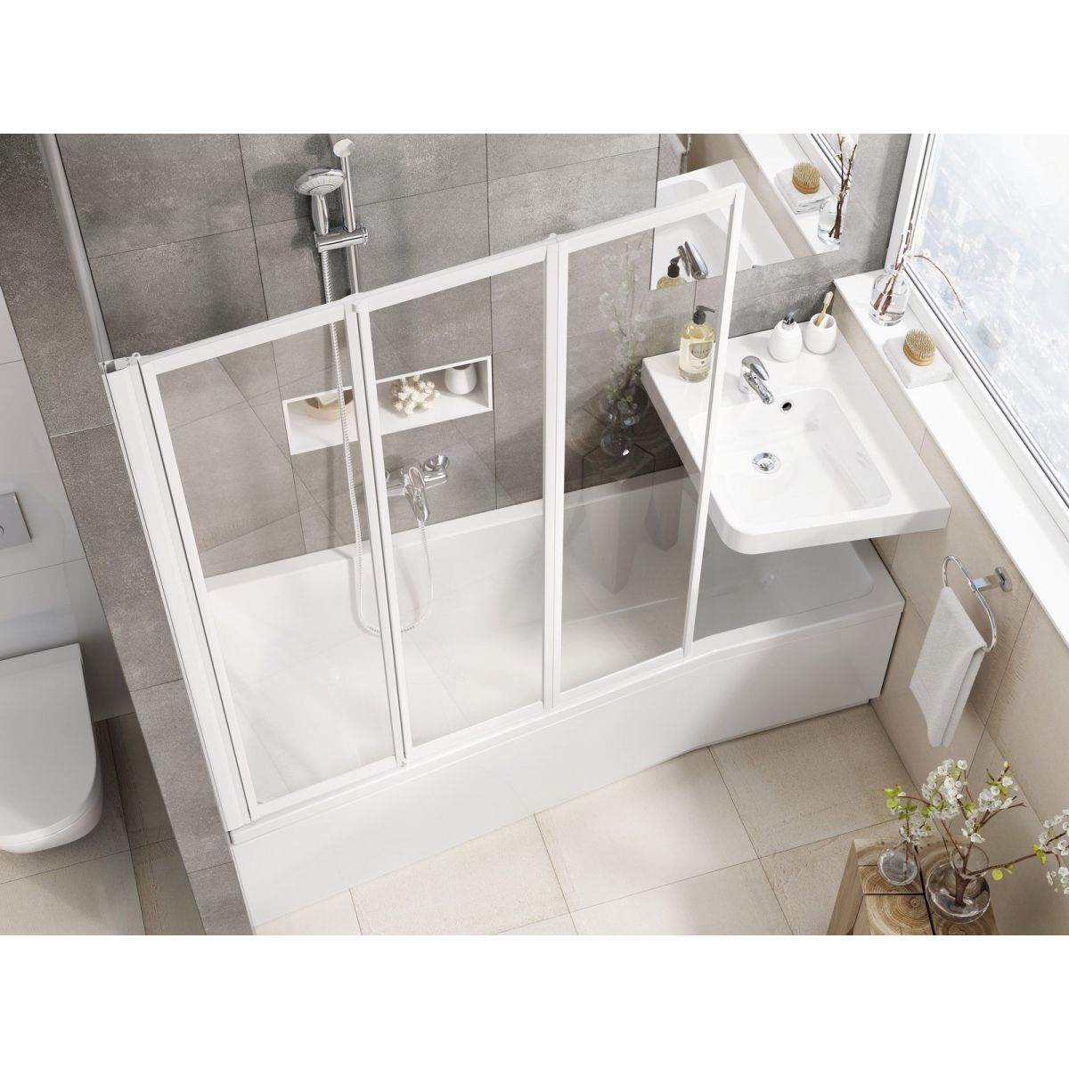 Wenn Sie die Badewanne mit einer Trennwand VS3 ergänzen, wird sie bei Bedarf zu einer geräumigen Duschkabine.