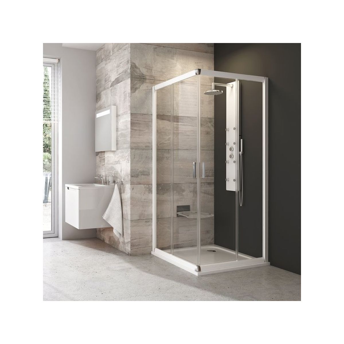 Das Foto zeigt eine Kabine in einer anderen Profil-/Glasfarbe. Der Preis gilt nur für die Kabine.