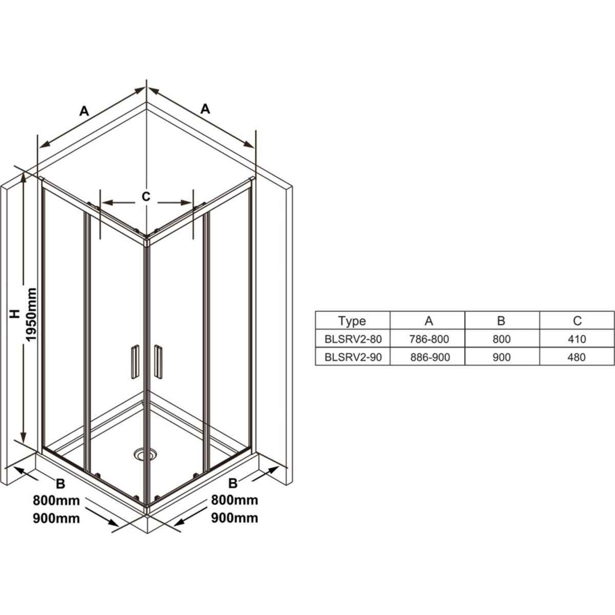 - Abmessungen: 90 x 90 cm (Einstellbereich: 88,6 - 90 x 88,6 - 90 cm)