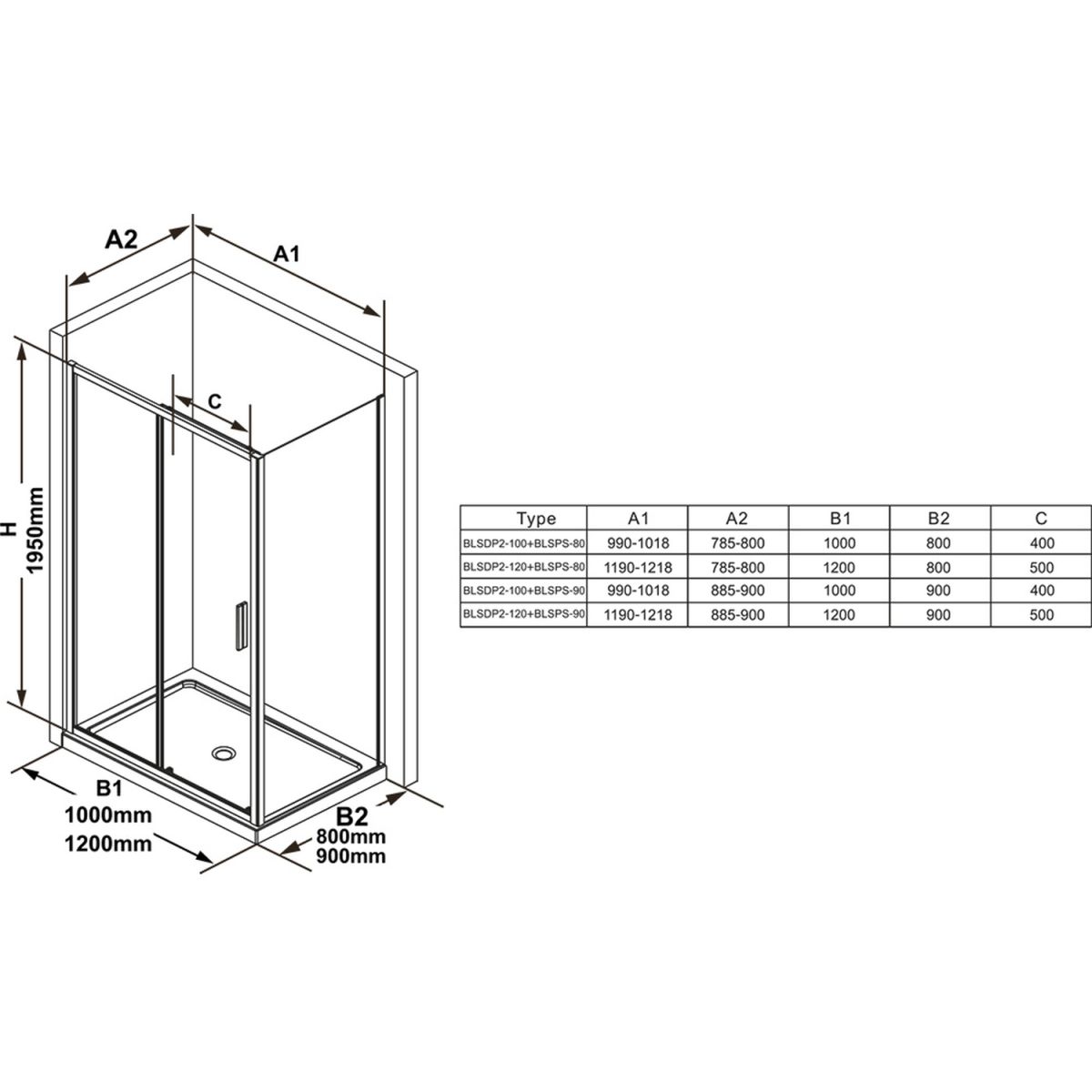 - Durch die Kombination der feststehenden Wand BLSPS mit der ausgewählten Größe der Duschkabine Ravak Blix Slim BLSDP2 erhalten Sie eine rechteckige Duschkabine